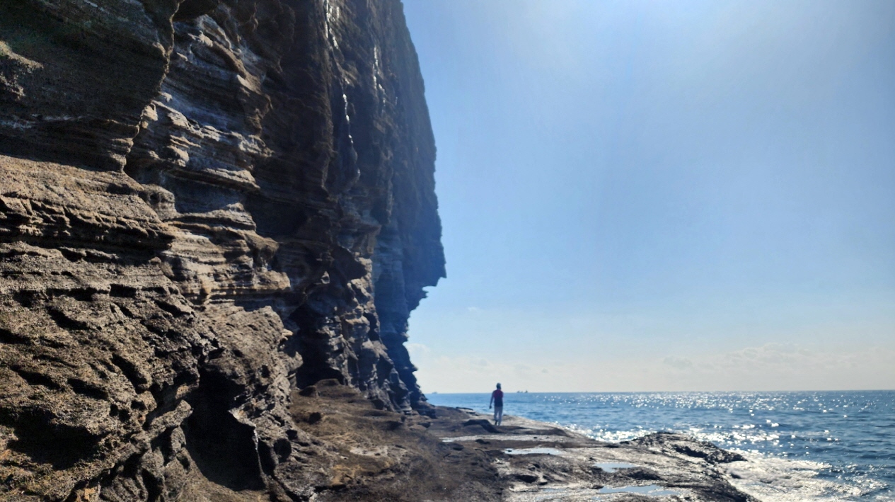 - 올레코스를 돌 때 용머리해안이 물때가 맞지 않았는지, 바람이 세서인지...아무튼 (용머리해안은 한달 중 거의 보름은 열리지 않는다.) 통제를 하고 있어서 둘러보지 못했다. 하여 이번에 산방산 용머리해안 지질트레일로 묶어서 걸어보기로 했다. 마침 오전 10시부터 용머리 해안이 열린다고 하여, 아침 일찍 서둘러 버스를 타고 산방산에 도착했다.