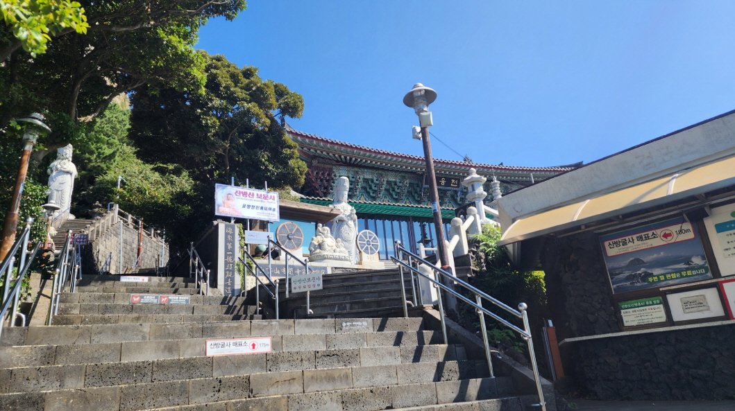 해발고도 200m 지점에 있는 산방굴이라는 자연 석굴안에 불상을 안치하였기 때문에 이 굴을 '산방굴사'라고도 한다.