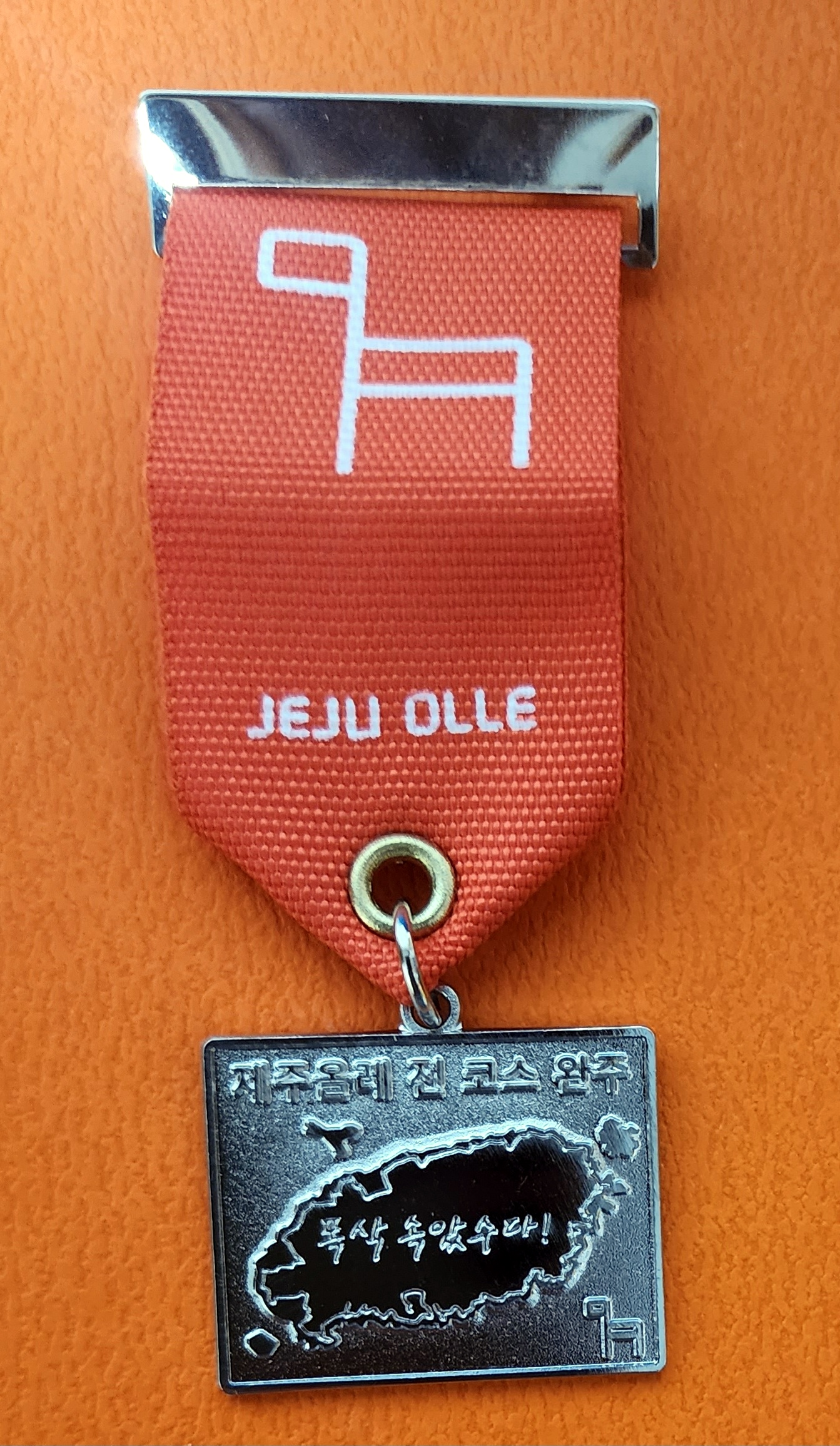 - 완주를 하면 '제주올레완주증서'를 수여해주고, 파란색과 주황색중 하나를 골라 부상으로 준다.