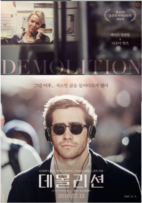 - 아내를 교통사고로 잃어버리면서 영화는 시작된다. 인간은 고통을 받아들이는 초기 단계로 '부인'의 감정을 느낀다.