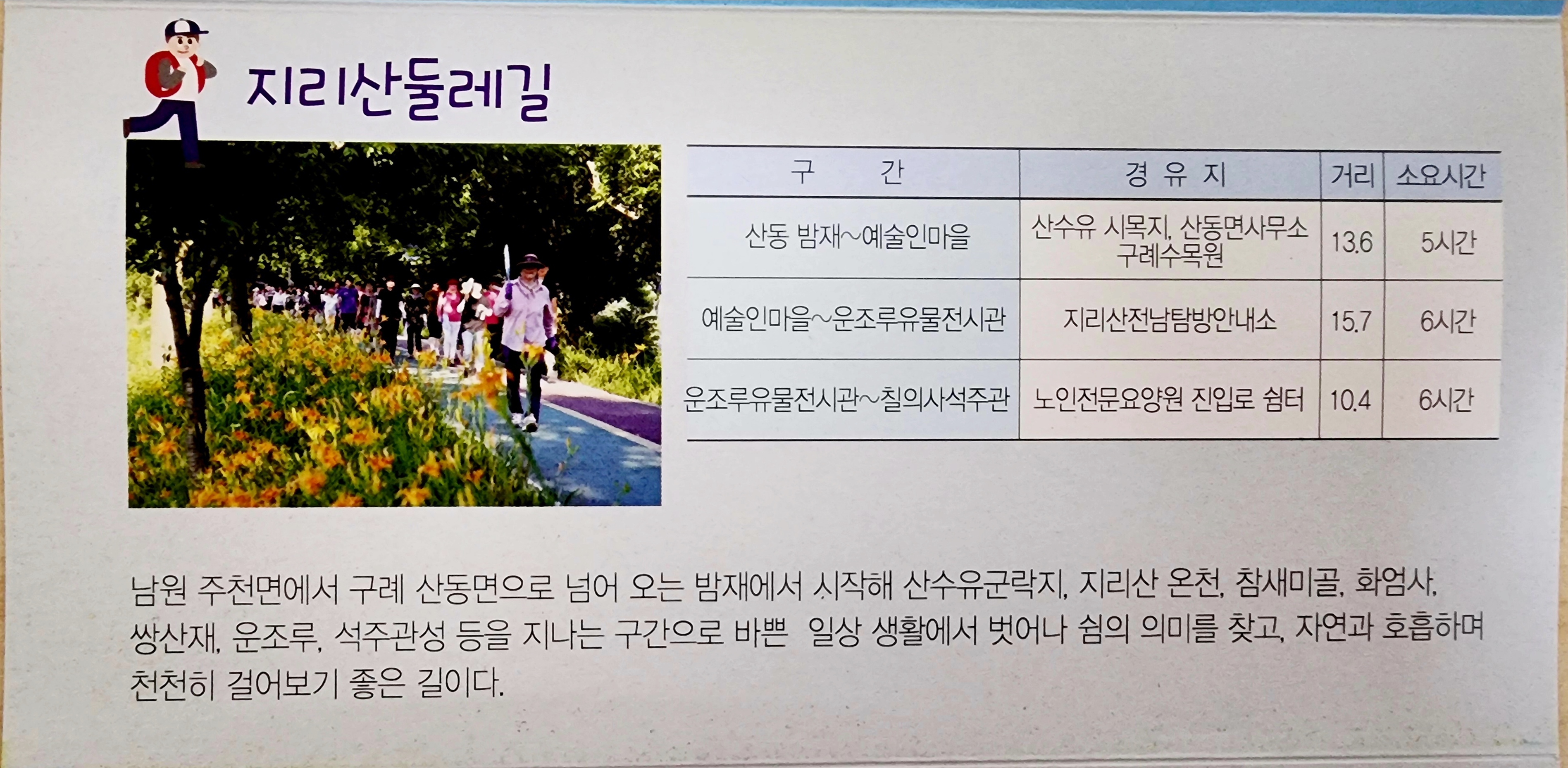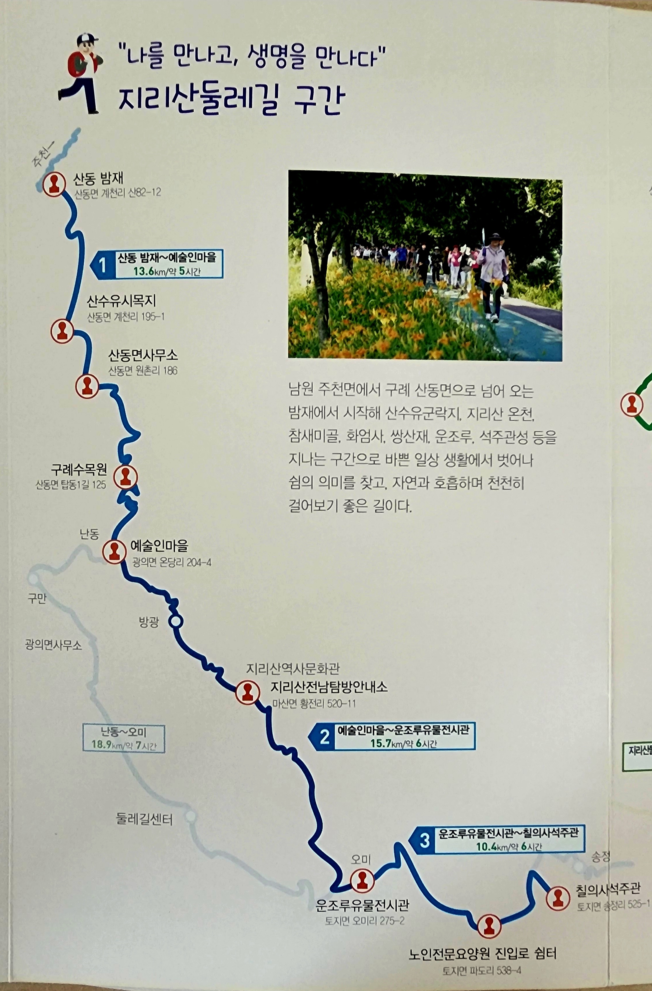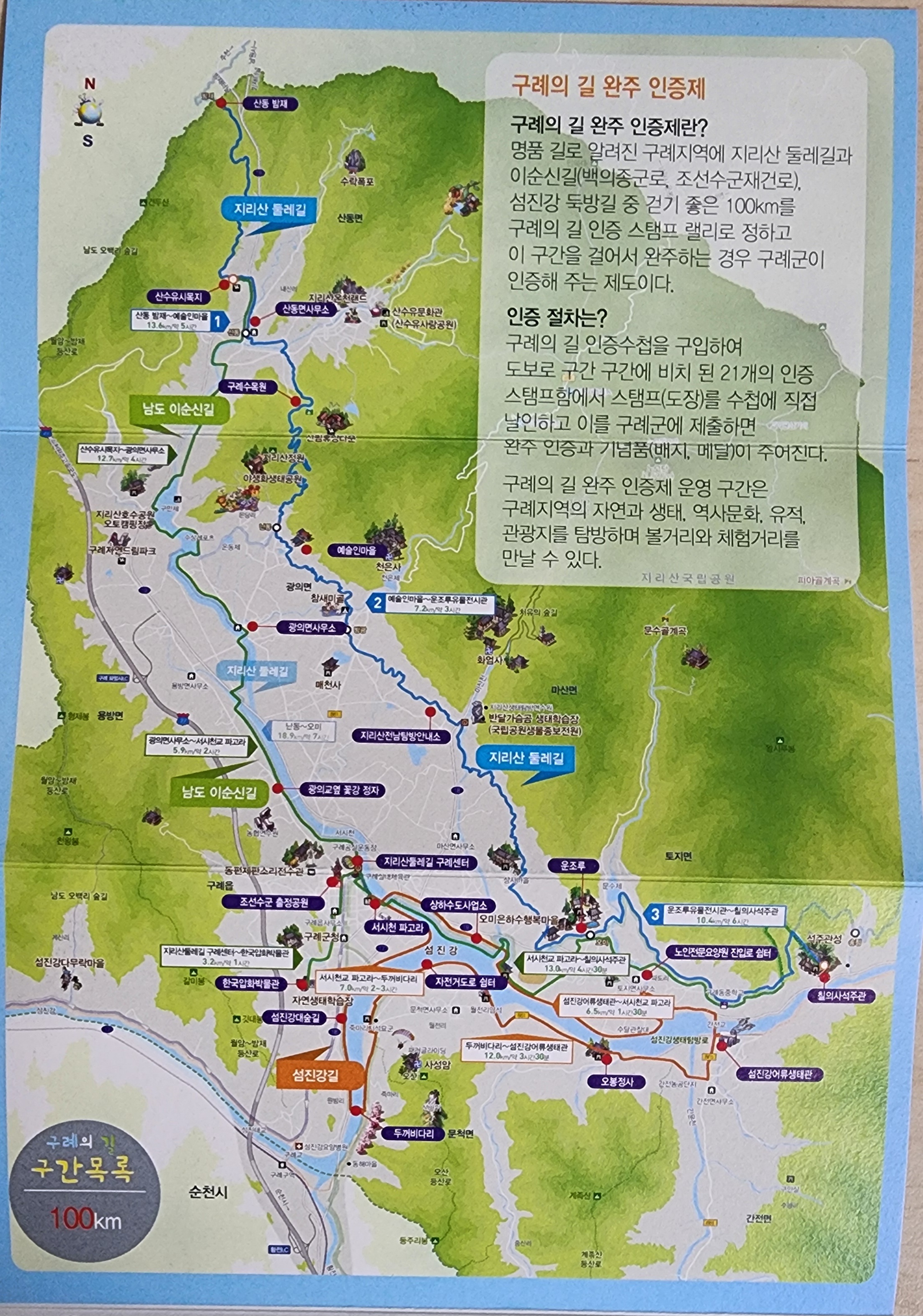 - 완주증이나 구간 배지는 구례군청(문화관광실)에서 받을 수 있음.