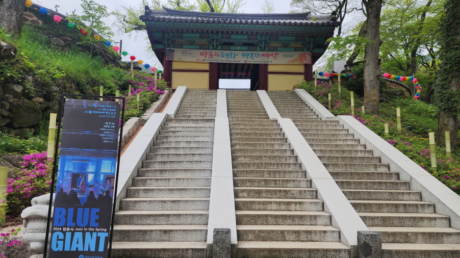 - 나는 수홍루로 다시 나와 일주문을 지나 천은사 경내를 구경하고 경내에서 이어진 '나눔길로 들어서기로 한다.