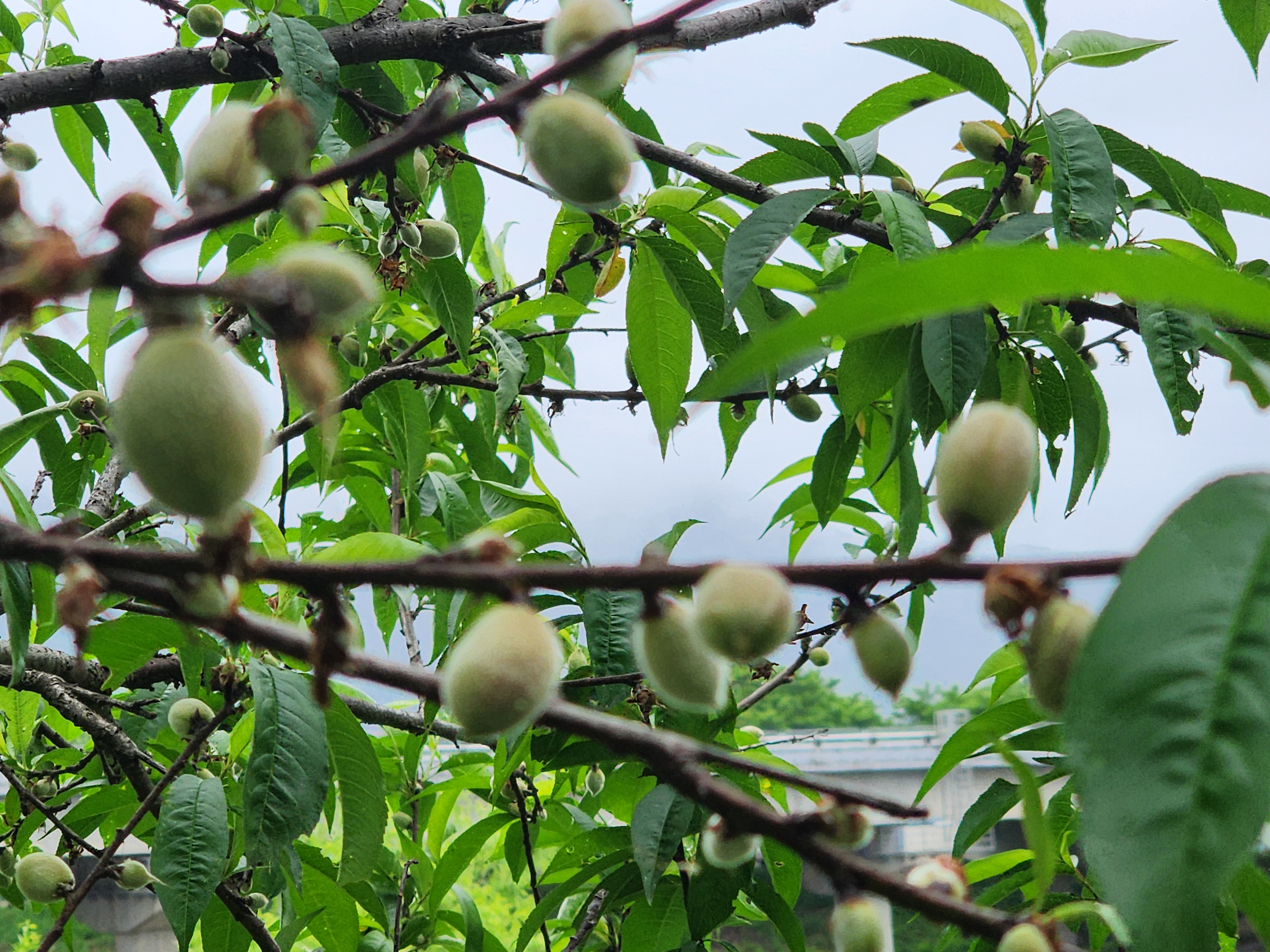 - 매화처럼 붉은 꽃을 달고, 하얀 벚꽃 사이에 피어있던 복숭아꽃도 이제 개복숭아 열매를 달았다.