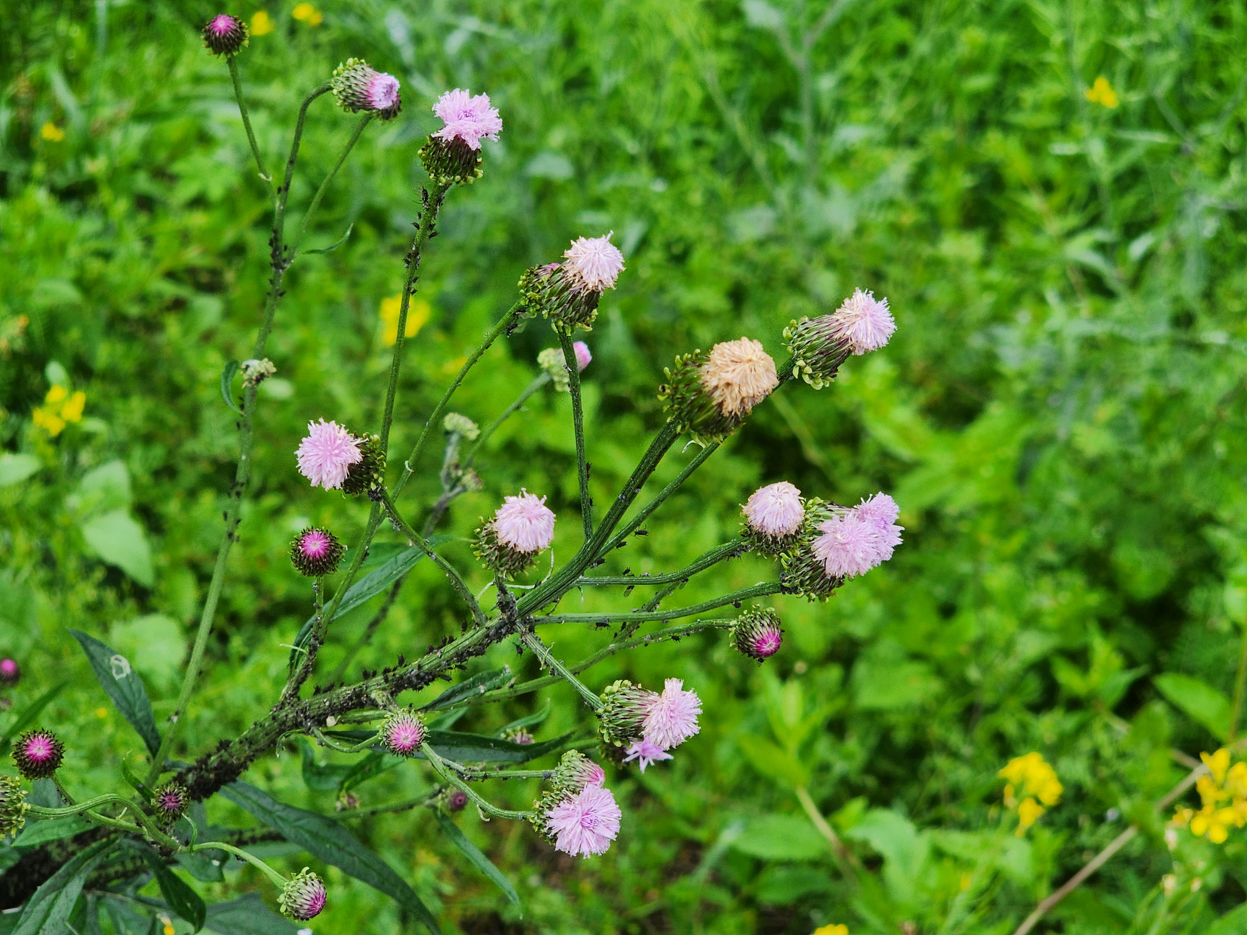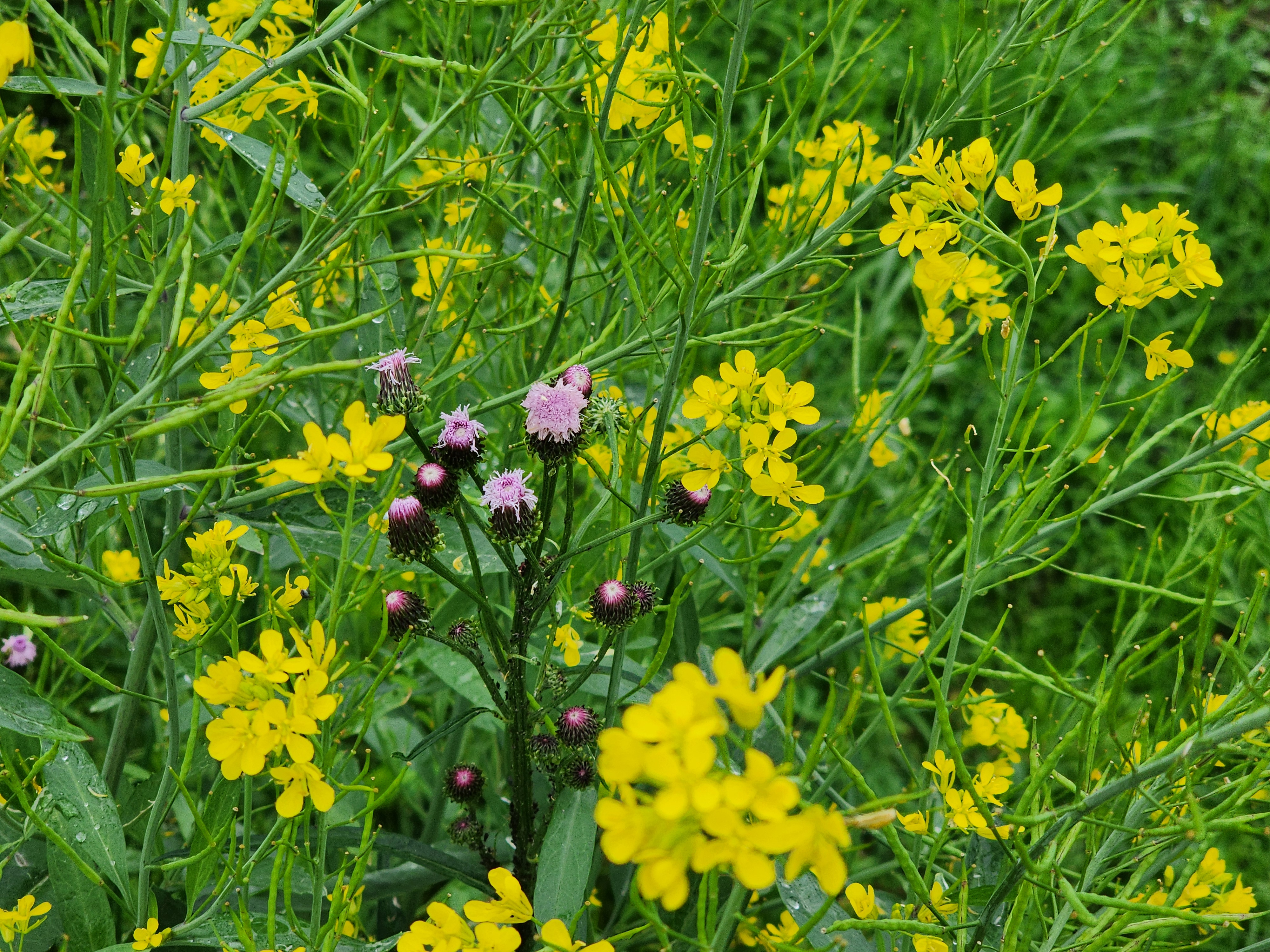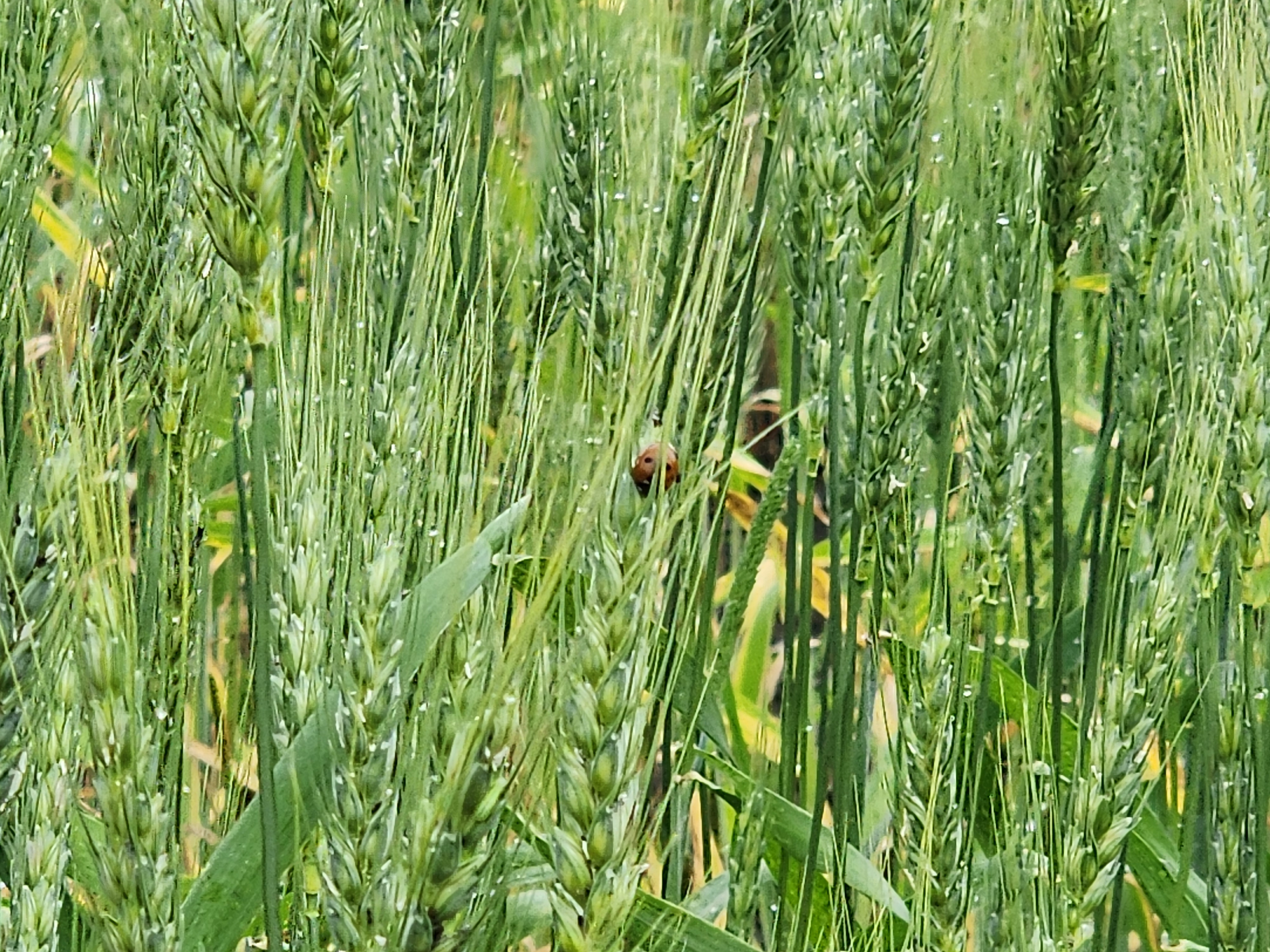 - 보리에 매달린 무당벌레와 여러 들꽃들.