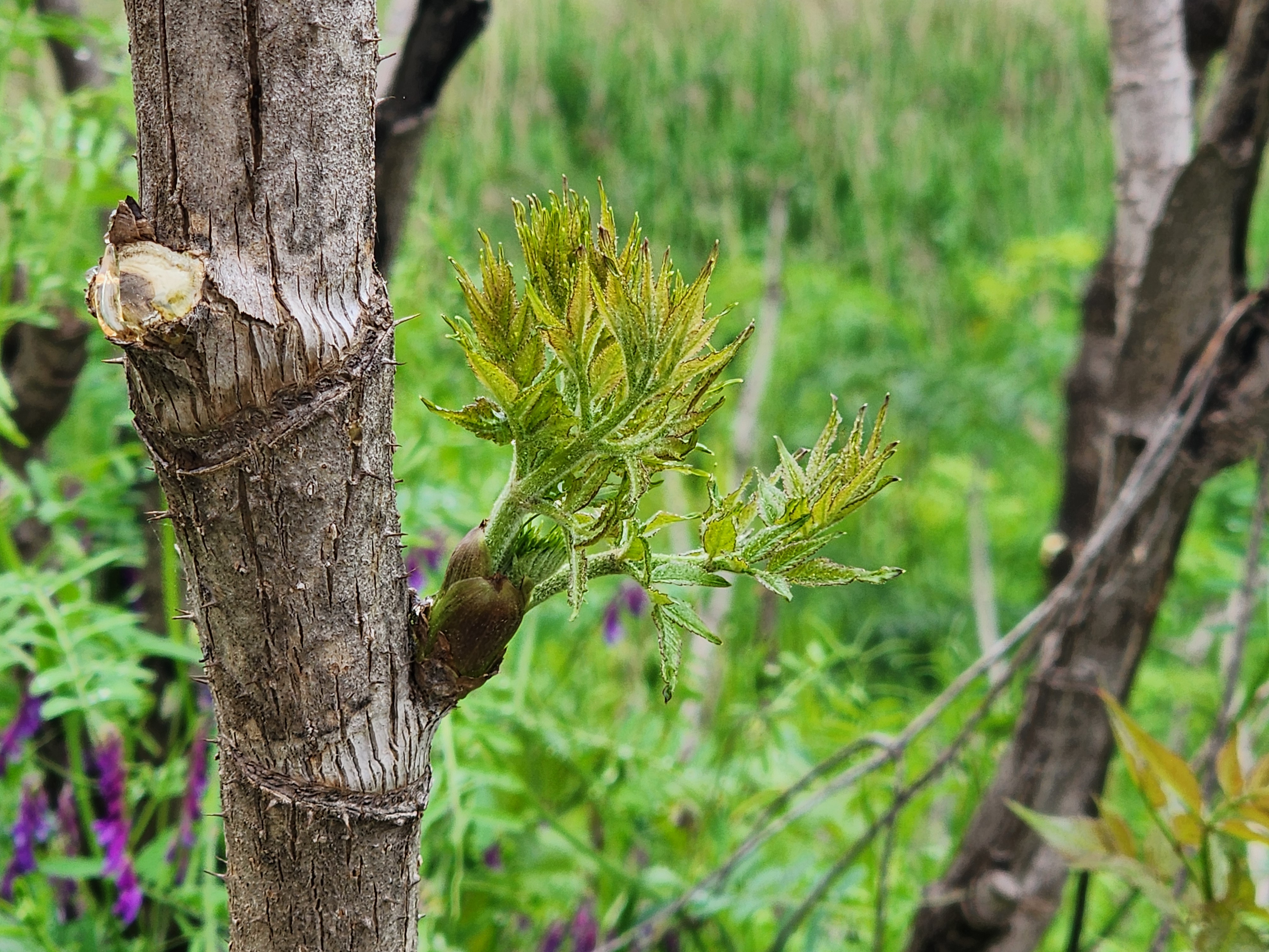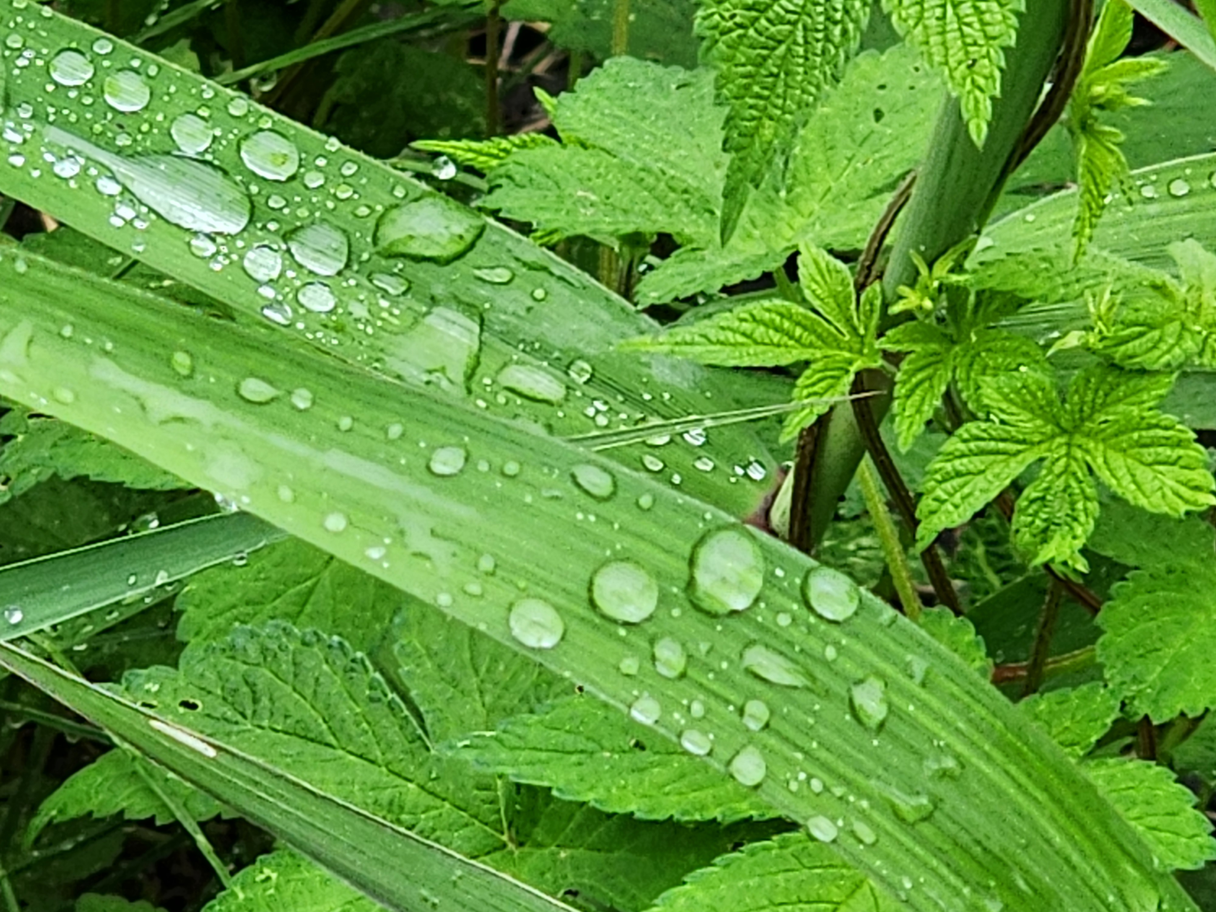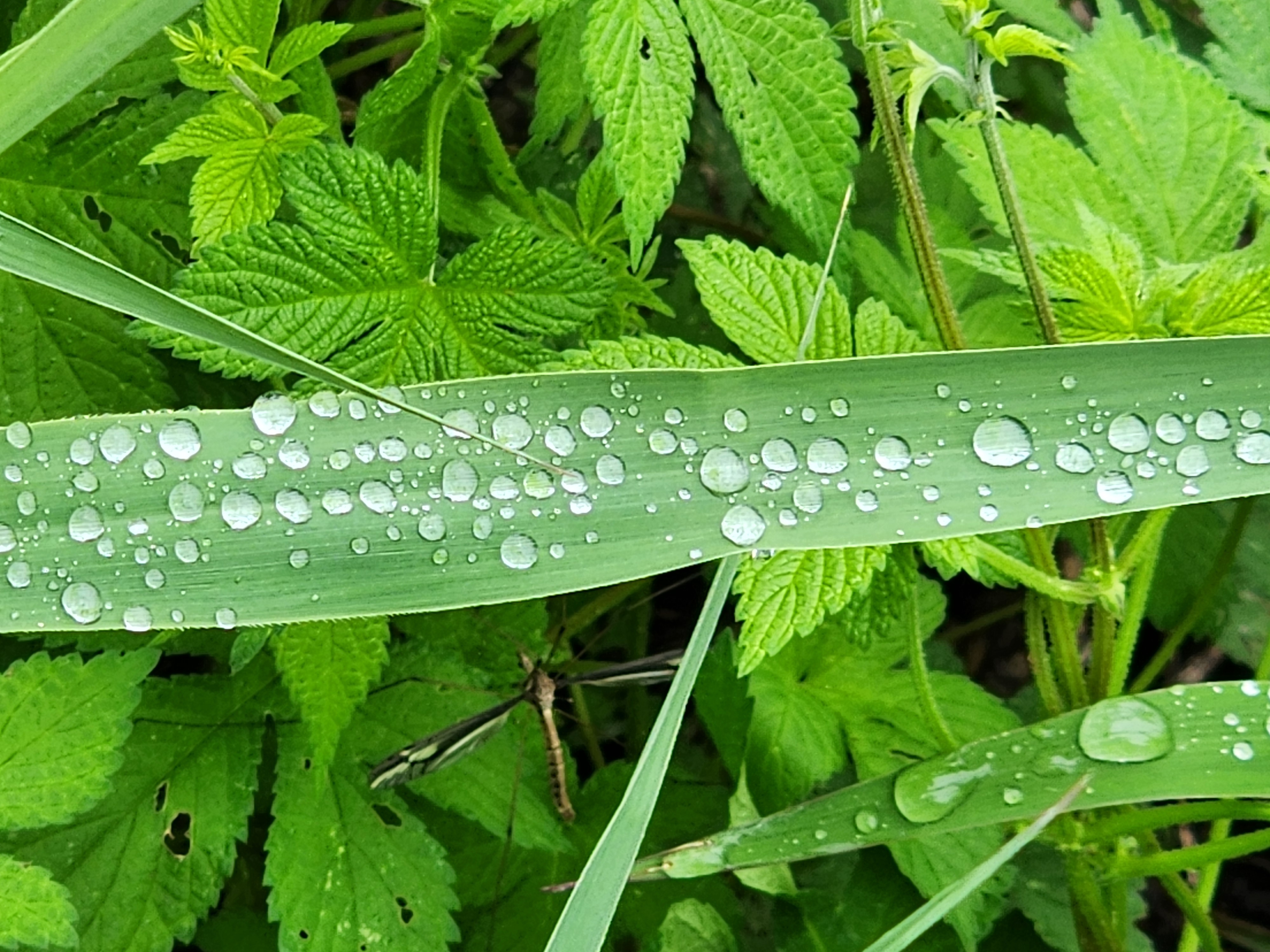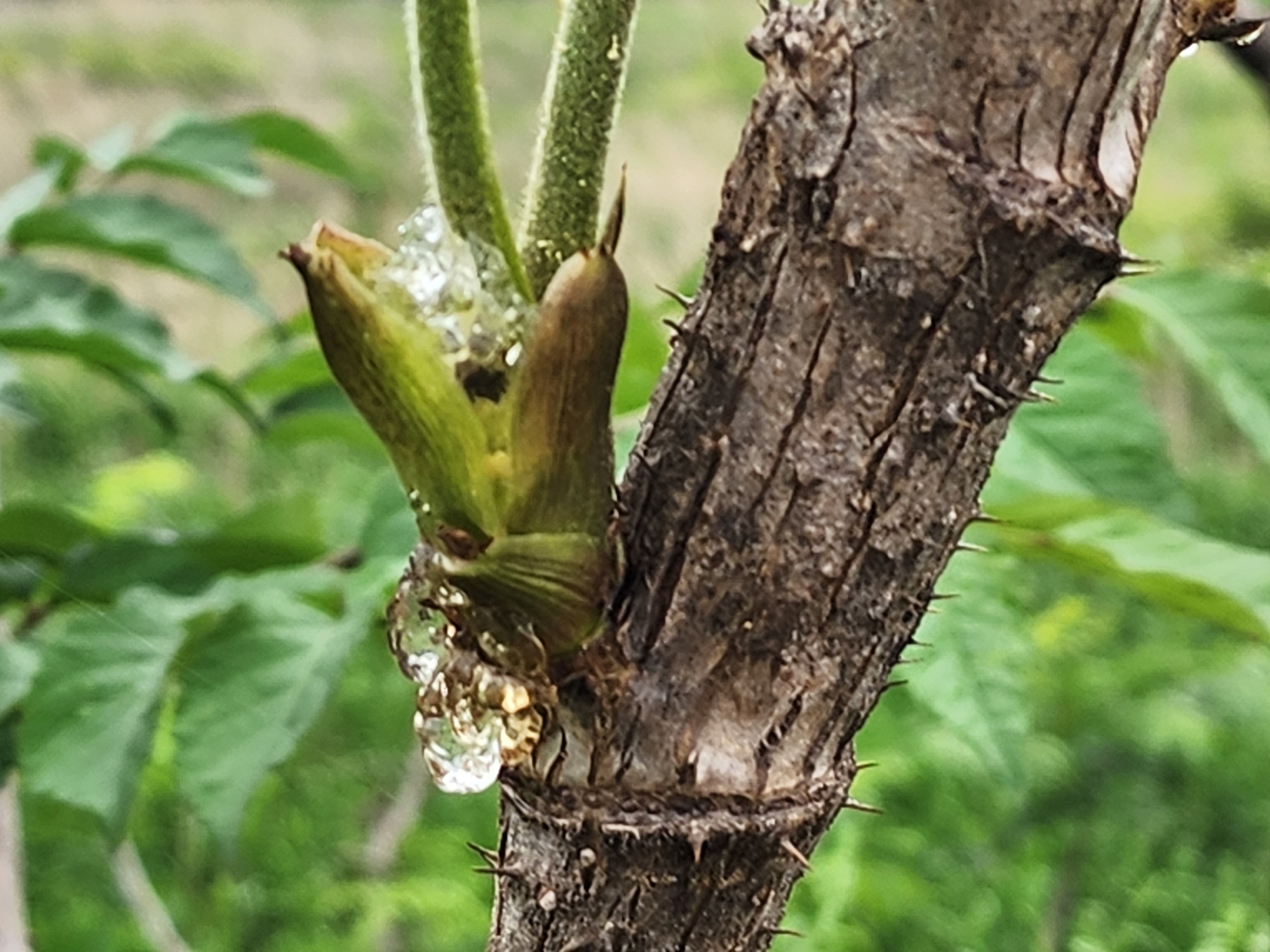 - 둘레길 가장 자리에 두룹나무에도 물방울이 맺혔다.(인근 주민이 채위하므로 건들면 안됨)