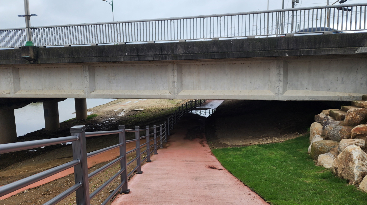<서시천 파고라에서 시작하면 이렇게 다리밑을 걸어 다리건너편으로 가면 공사중이라 길이 없다.>
