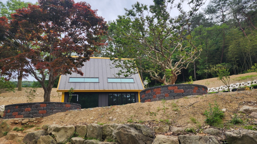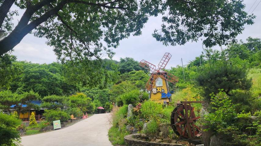 - 황금빛출렁다리를 지나 계속가니, 식당과 팬션이 나온다.