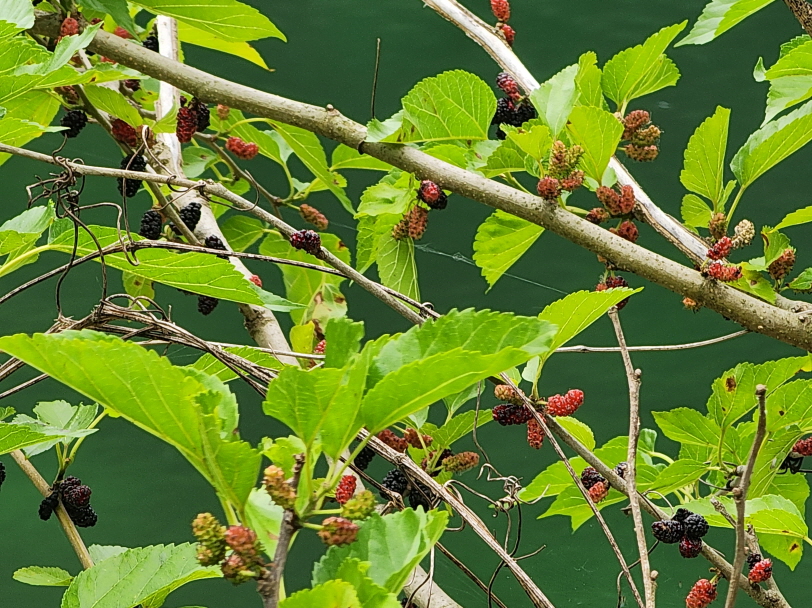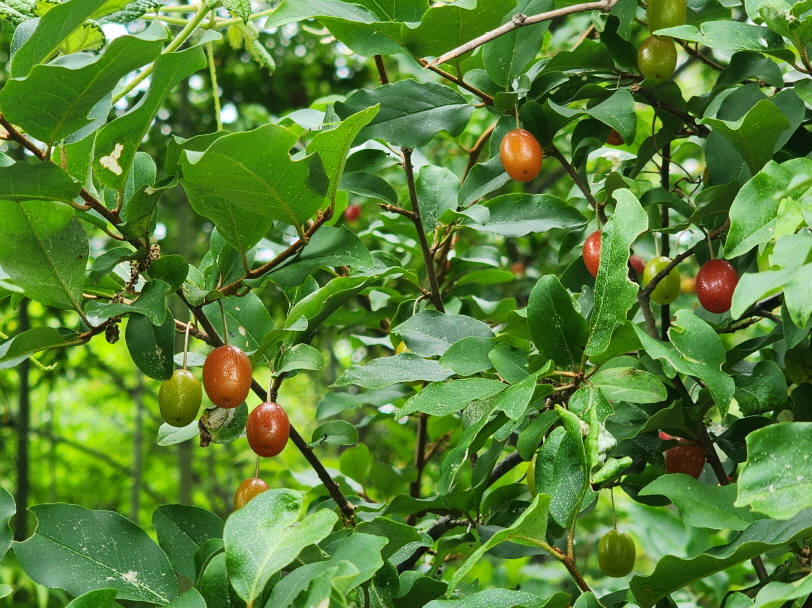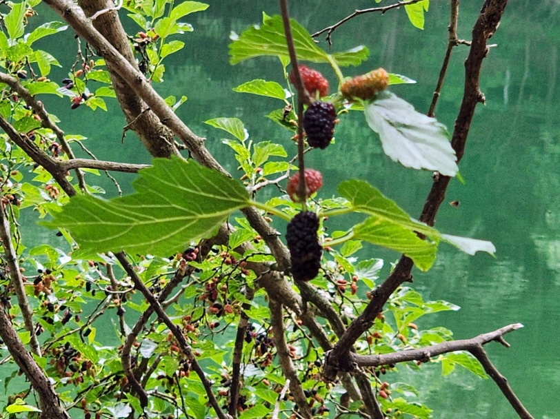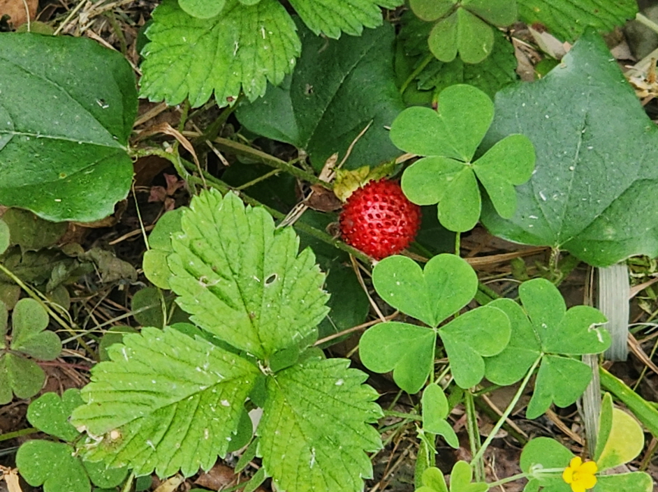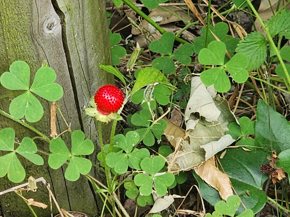 - 뱀딸기가 주변에 많다. / 가는 길에 보리수 열매가 빨갛게 잘도 익었다. 열매을 따먹어 보니 정말 달고 새큼하다.