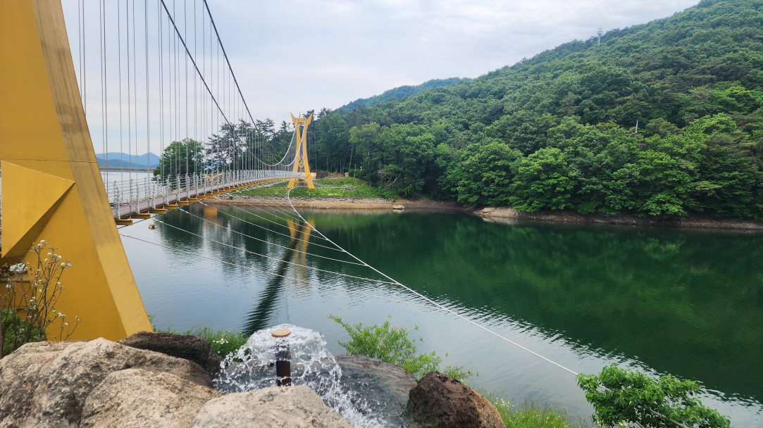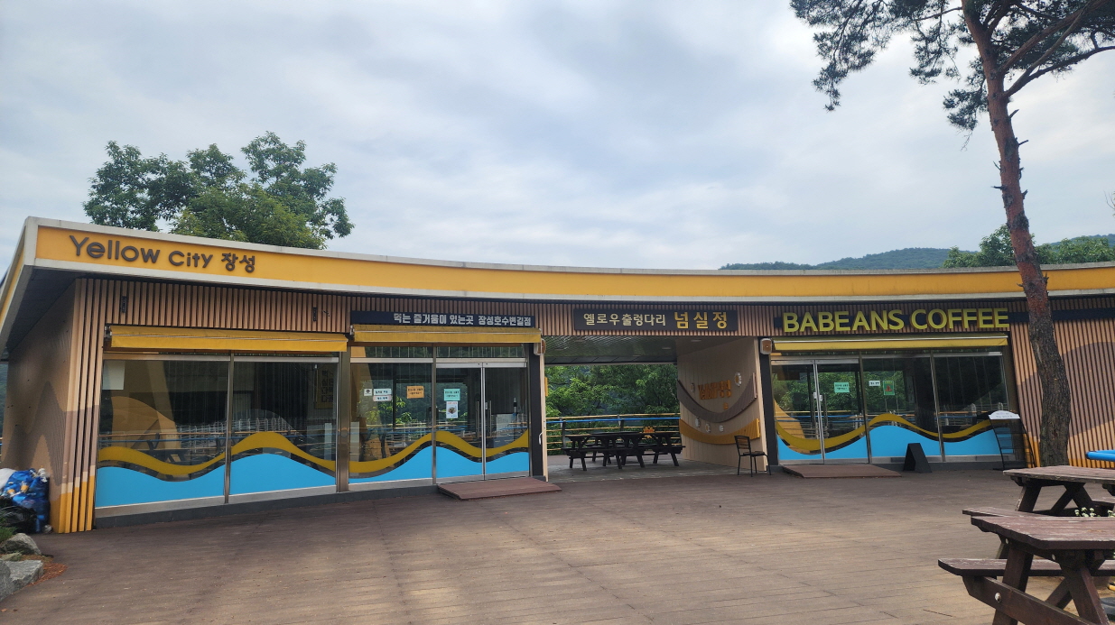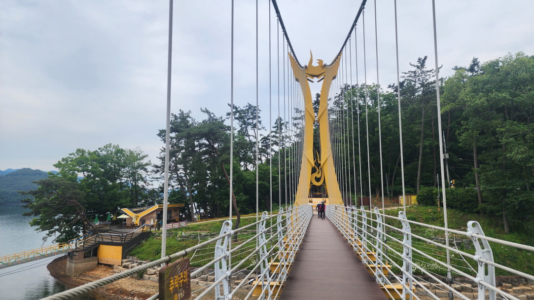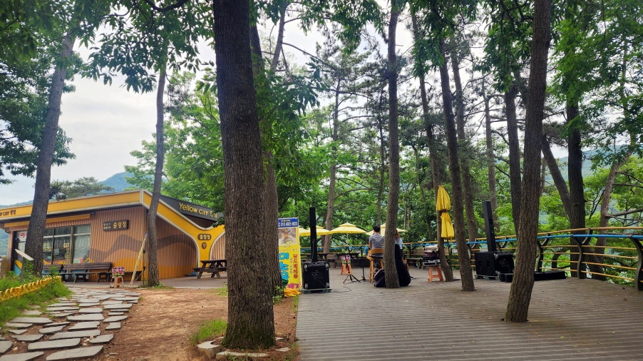 - 엘로우 출렁다리 앞 정자, 버스킹 하는 사람들, 레이크 전망대, 그리고 출렁다리, 매점