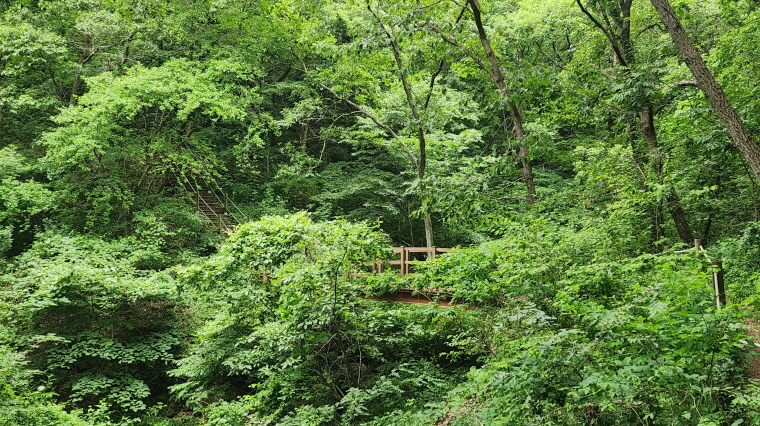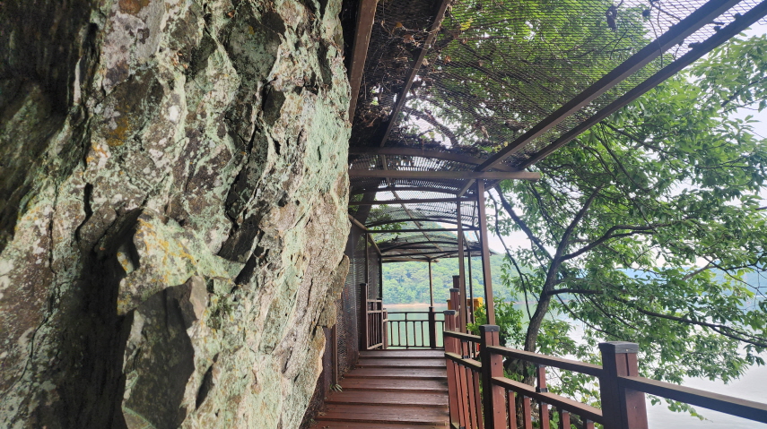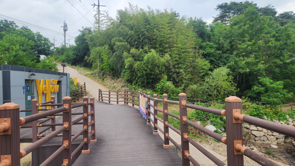 - 출렁길은 출렁다리가 2개 놓여 있고, 숲속길 쪽은 다리가 없이 데크길과 흙길로 조성되어 있는 데, 중간에 서로 연결하는 다리를 놓을 예정이라고 한다. 숲속길쪽은 아직도 조성공사 중이다.