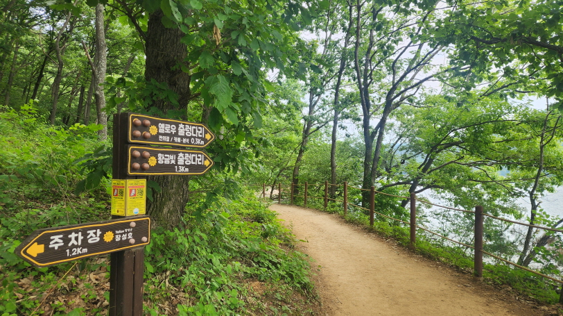 - 출렁다리를 보러 관광객들은 주로 출렁길로 가고, 운동을 위해 걷는 사람들은 주로 숲속길 쪽을 왕복한다.