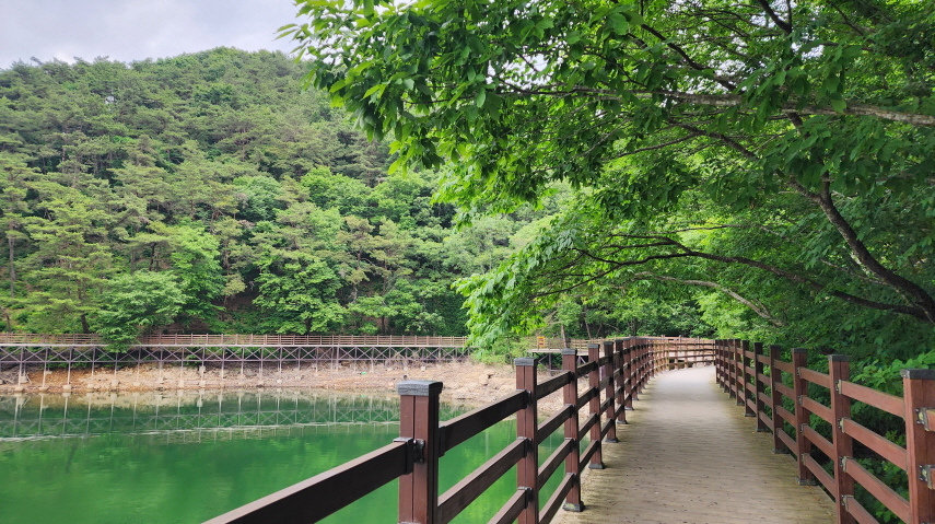 (구별을 위해 '출렁길'과 '숲속길'이라고 이름을 붙였을 뿐, 양쪽 길 모두 호수주변 데크길이고, 나무가 우거져 있어, 느낌이 똑 같다. 서로 쭉 마주 보며 걷게 된다.)