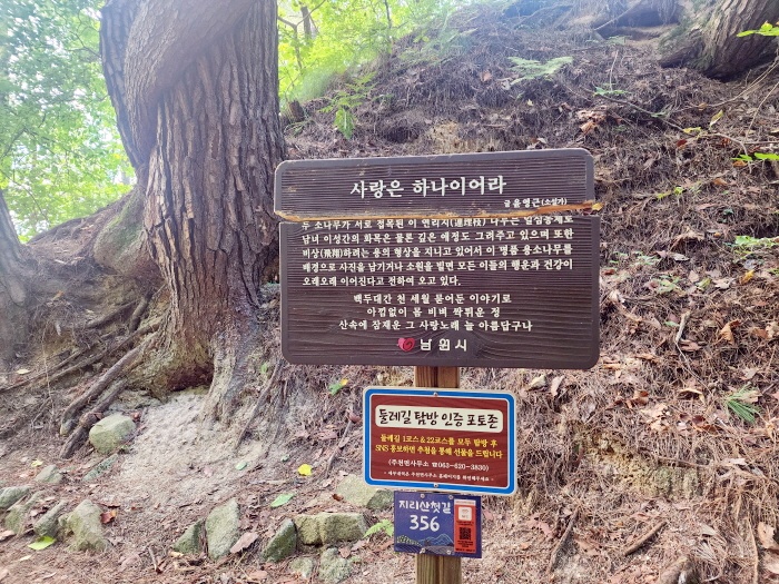 - 지리산 둘레길 1코스의 유일한 포토존 (연리지- 사랑나무)