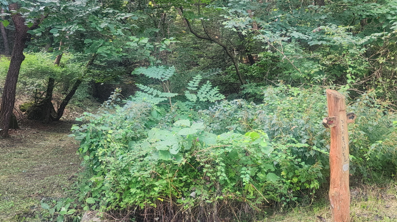 - 오늘은 오전에 산행을 마치기 위해서, 길이를 줄여, 옛 주유소 자리에 차를 세우고 여기서 부터 걷기 시작했다.