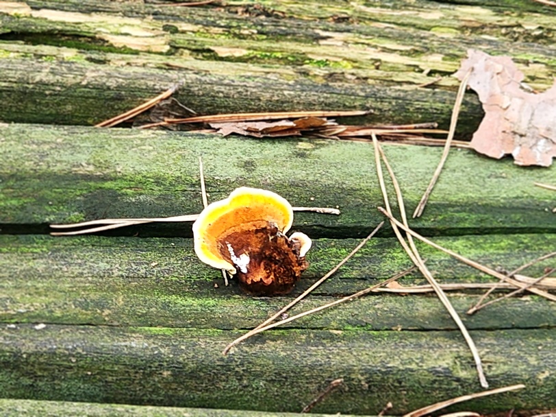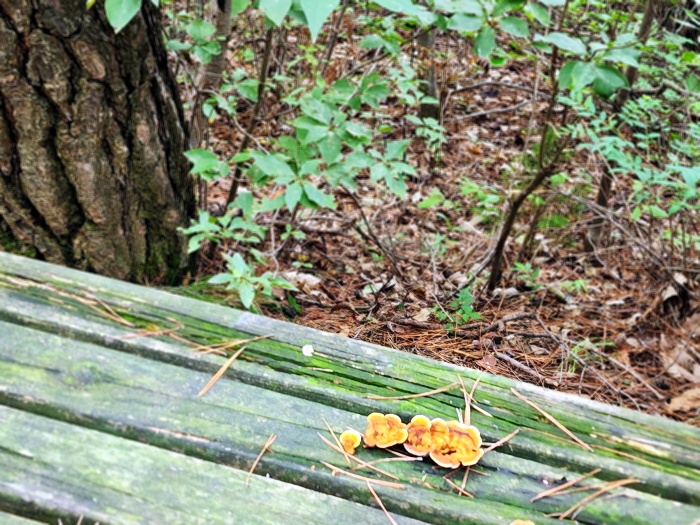 - 나무 벤치에 핀 버섯