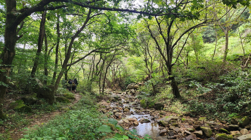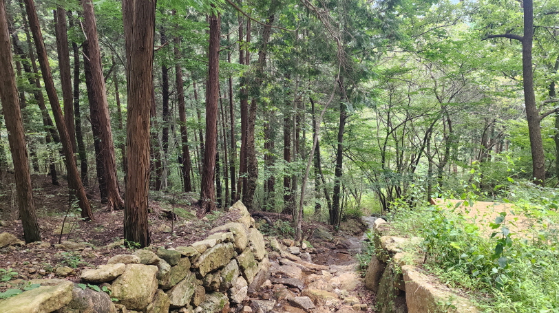 - 여름에 비가 많이 올 때는 이 계곡에 물이 많아 계곡을 건너는 돌다리가 물에 잠기는데, 여름이 지나고 나니 물이 많이 줄었다.