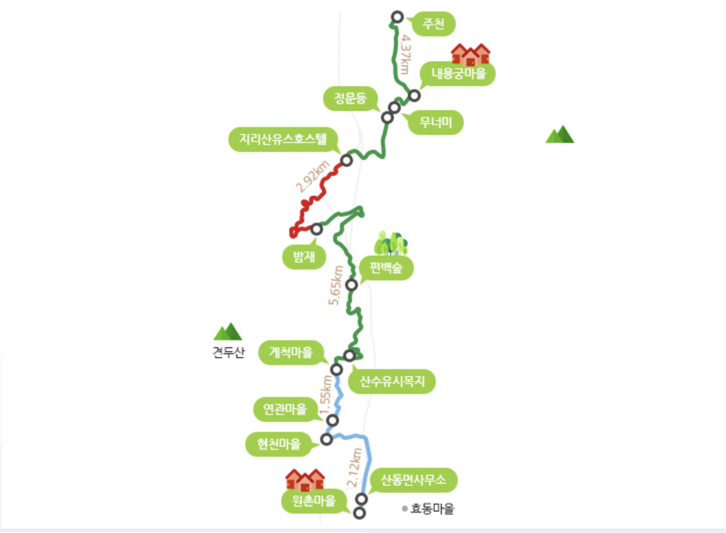 - 주천(유스호스텔 고개))에서 시작하여 현천마을까지 걸린시간 : 약 4시간