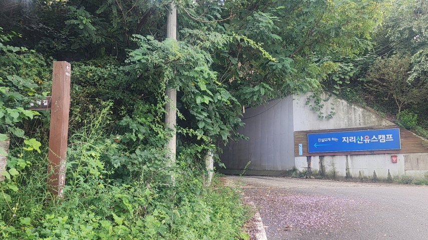 - 주천센터에서 장안재를 넘어 고개를 넘어 오면 여기로 내려온다.(왼쪽사진의 길) 이곳은 지리산유스호스텔이 있는 도로 고개 위 옛 주유소 앞이다. 이 도로가 산업도로가 생기면서 이 길로는 차도 거의 다니지 않는 길이 되었다. (고개 넘어 구불구불한 길이라)