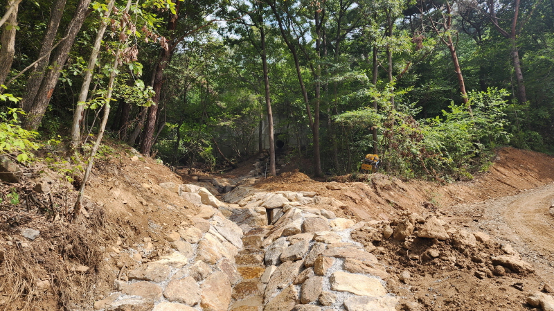 - 개울의 돌다리가 여름이면 물에 잠긴다고 했는데, 공사를 하고 새로 놓았다고 한다. 이 다리에서 길이 없었는데, 새로 다리에서 이어지는 길을 만들어 놓았다. 한창 공사를 크게 하고 있어 다음에 오면 또 어떤 모습으로 바뀌어 있을지 모르겠다.