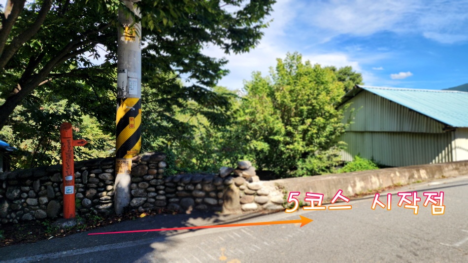 - 코스: 벽송사 경유 12.7km 금계마을 – 의중마을(0.7km) – 벽송사(2.1km) – 모전마을(용유담)(2.8km) – 세동마을(2.3km) – 운서마을(3.3km) – 구시락재(0.7km) – 동강마을(0.8km)