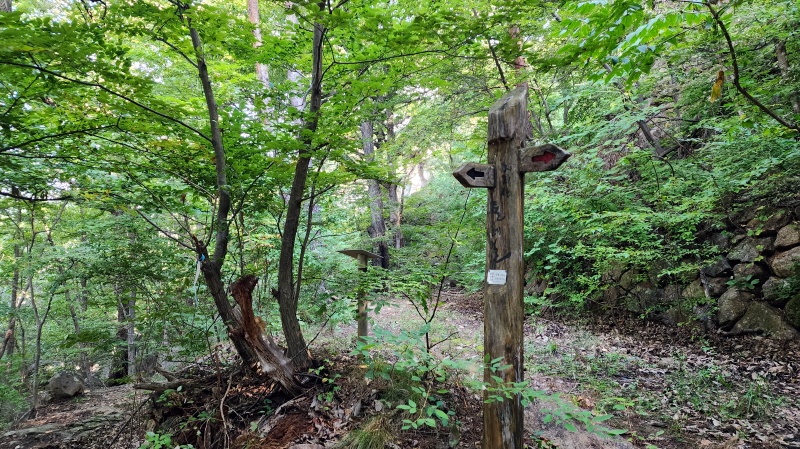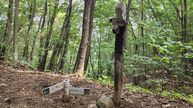 - 위 사진과 같이 직진하여 숲으로 들어가면 벽송사 사는 숲길 등산로 코스이다. 자신의 능력에 따라 선택하여 가면 된다.