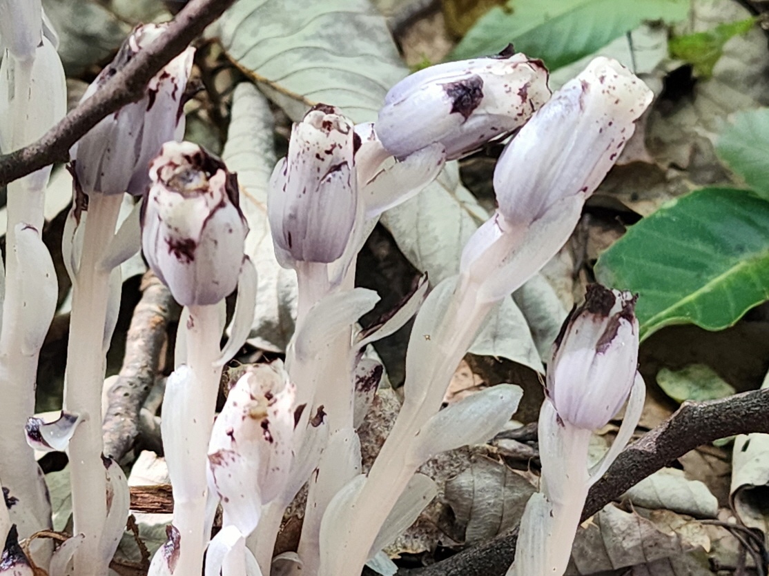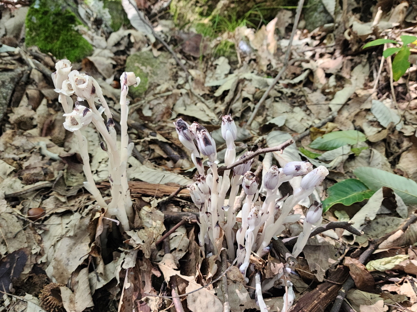 - '나도 수정초' : 숲의 요정이라 불리는 '나도 수정초'는 다른 식물과 달리 엽록소가 없어 광합성을 하지 못하기 때문에 부엽토에서 양분을 흡수해 살아가는 부생식물이라고 한다. 국립수목원에서 의귀식물(취약종)으로 지정되어 있는 꽃이라고 하니 이를 볼 수 있었던 귀한 경험이었다.