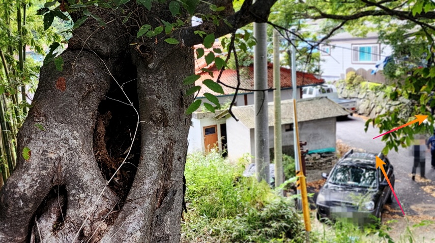 - 의중마을 당산나무에서 순환길이 나누어 진다. 아래로 내려가면 좀 쉬운 코스이고,(위 안내지도 참조)
