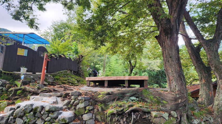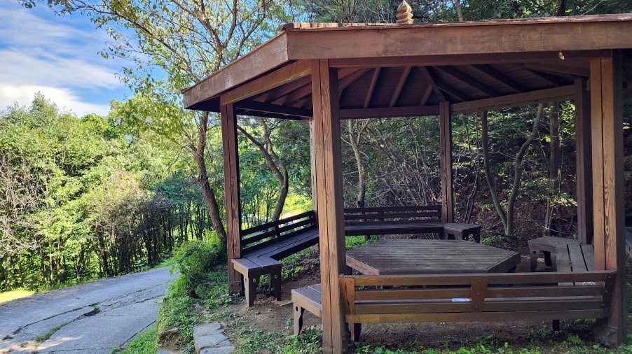 - 서암정사를 구경하고, 정자 아래 의자에서 휴식을 취한 후 다시 둘레길로 내려온다.