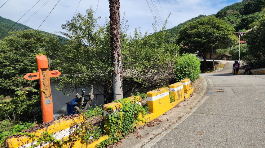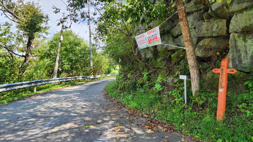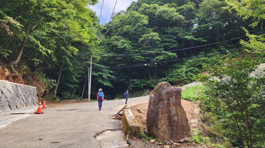 - 다시 경사로를 올라 삼거리에서 벽송사를 향해 도로길을 올라간다. 경사가 굉장히 급하다.
