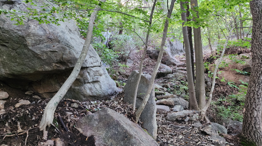 - 서암정사, 백송사 순환코스: 숲길 등산로- 경사 있음