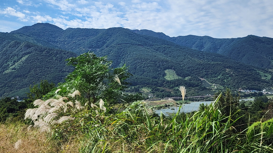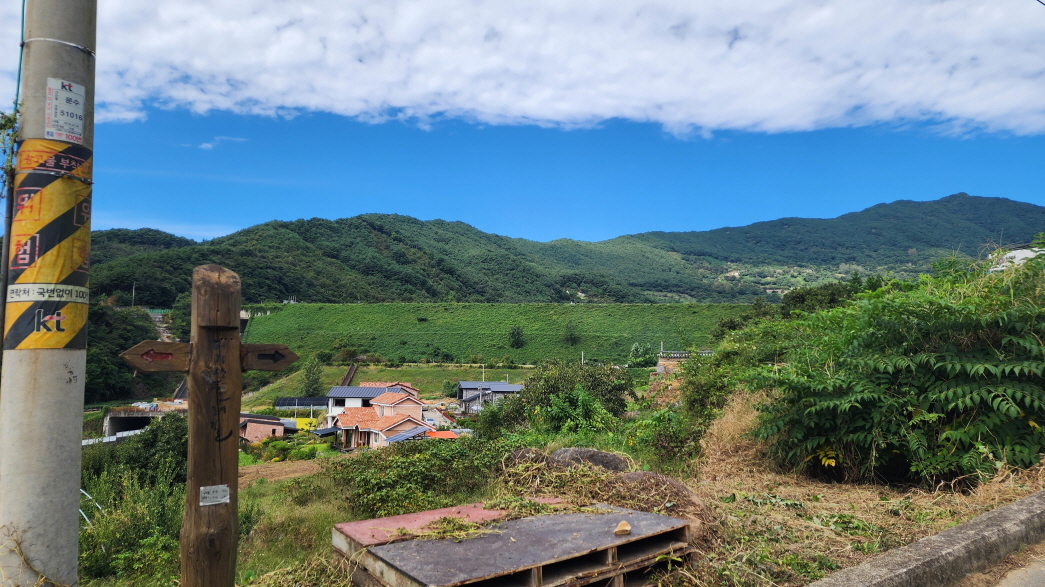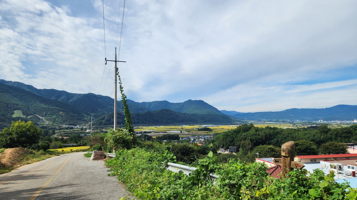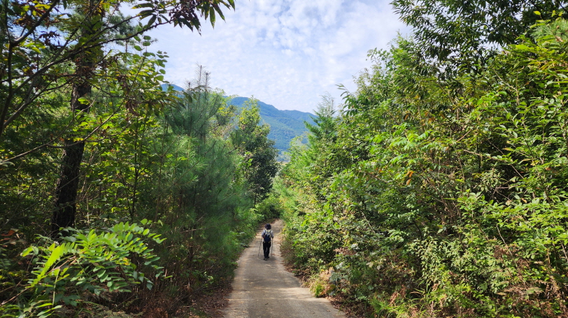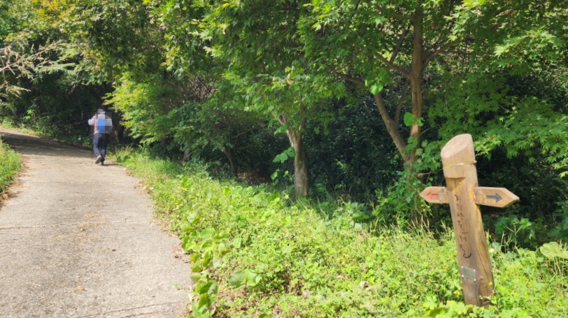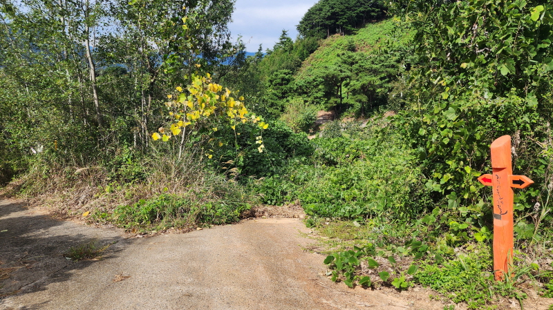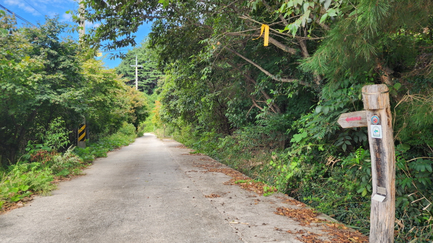 전에는 흙이 었던 농로길들이 시멘트 포장이 되어 있고, 산중턱까지 전원주택 단지가 들어서서 포장길을 내려와야 하는 점이 싫지만 마을길을 제외하고는 거의 숲길이어서 가을에는 걸을만하다.