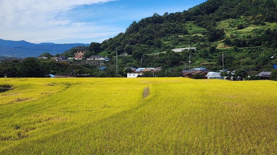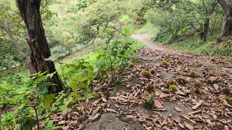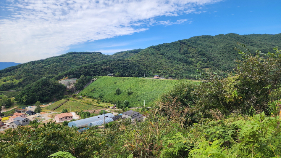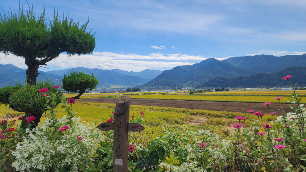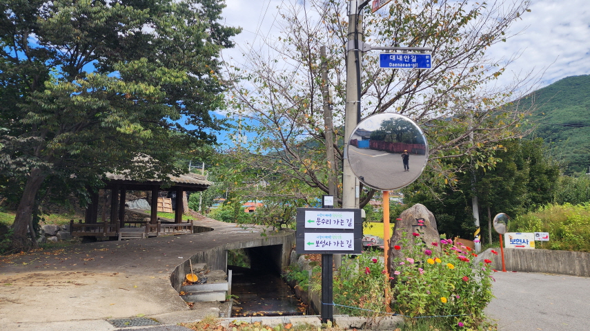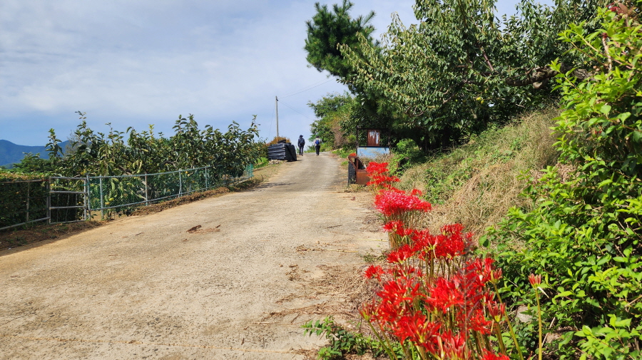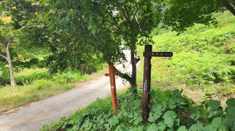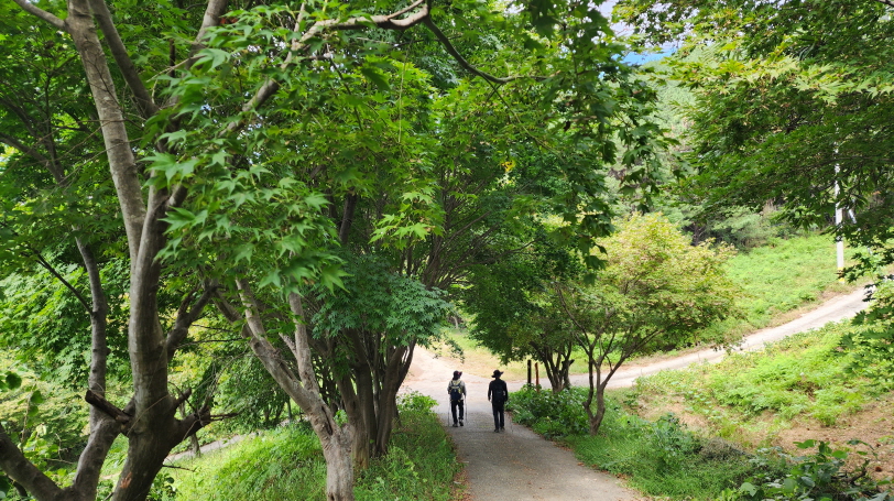 전에는 흙이 었던 농로길들이 시멘트 포장이 되어 있고, 산중턱까지 전원주택 단지가 들어서서 포장길을 내려와야 하는 점이 싫지만 마을길을 제외하고는 거의 숲길이어서 가을에는 걸을만하다.