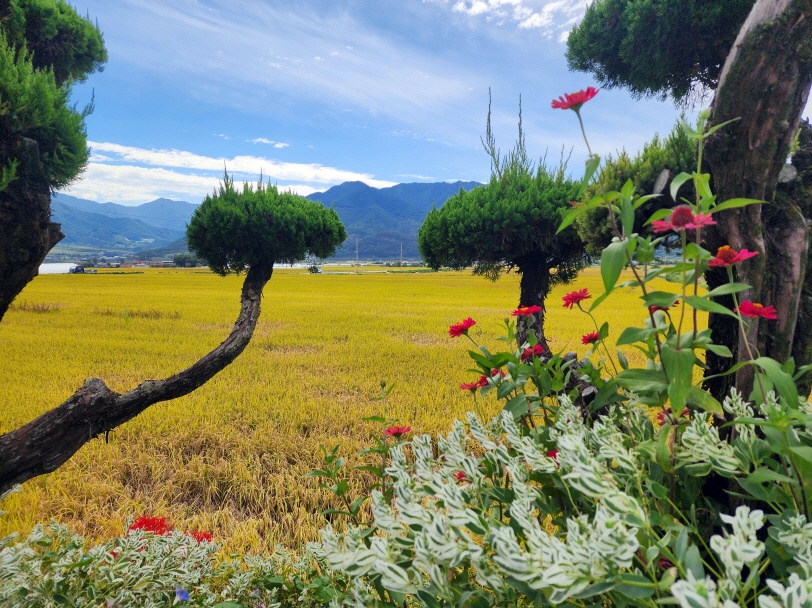 - 운조루앞 정자에서 인증 스탬프를 찍는다. (4번째네!^^)