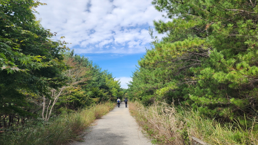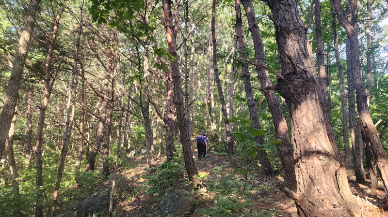 - 송정의 시작점이 산 중턱이고, 시작점이 다소 경사가 있지만, 조금만 올라가면 가장 높은 지점을 통과하게 되어 힘들지 않게 오를 수 있다.