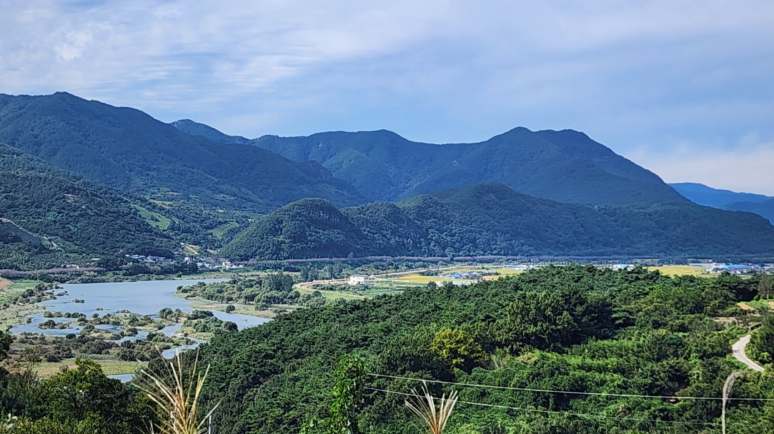 - 멀리 어류생태박물관 옆 카페의 전망대가 보인다. (백의종군로/ 구례둘레길을 걸을 때 갔던 곳이라 반갑다)