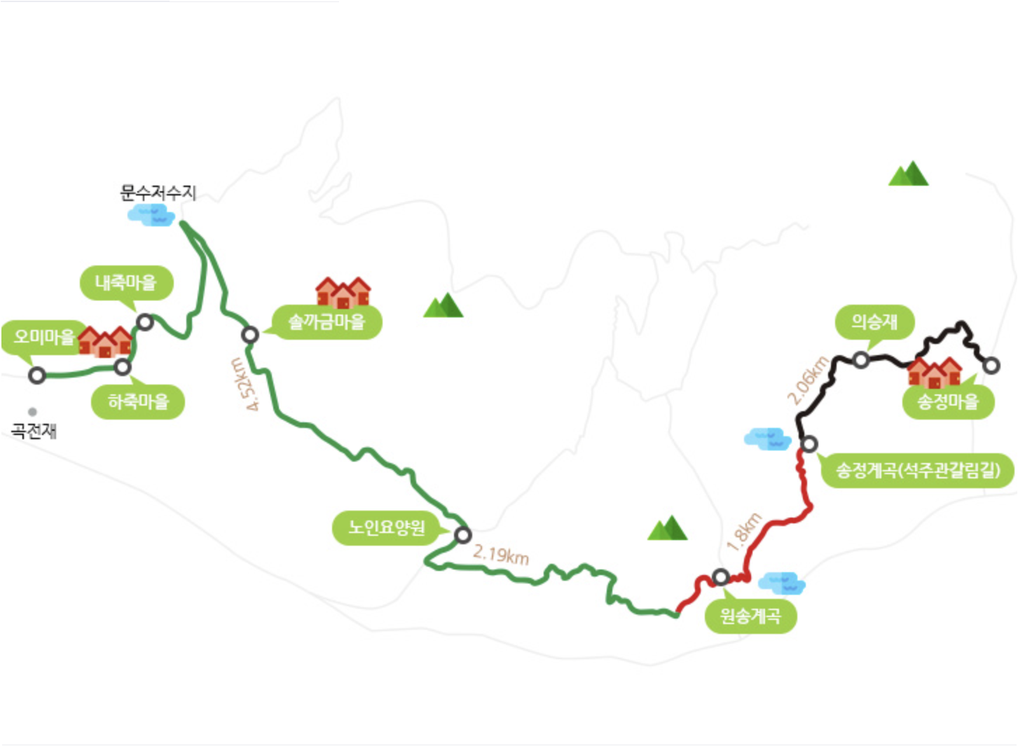 - 백의종군로와 구간이 겹친다. (운조루에서 시작하여 포장도로와 숲길을 걸어 석주관으로 내려오는 길)