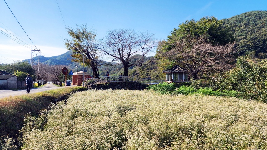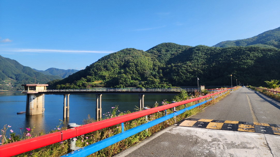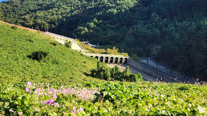 - 하동호에서 지리산둘레길 삼화실 안내소를 향해 걸었다. 아침에 시작했는데, 숲길에 들어서기까지 거의 모든 구간을 해를 바라보고 걸어야 해서 무척 덥고 따가웠다. 더구나 마을길 거의 모든 길이 시멘트길이고, 그늘이 없다.