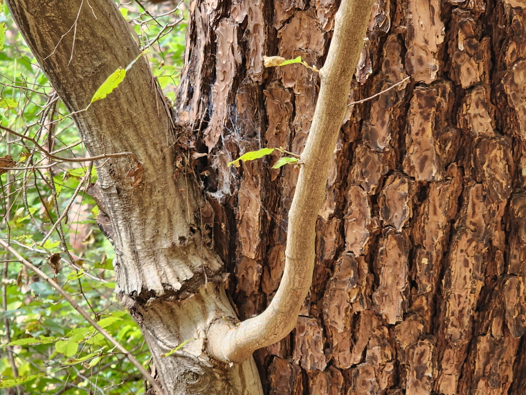- 작은 서어나무는 큰 나무를 타고 아래서 자라, 아주 큰 나무를 껴안고 한 나무로 붙어 버렸다. 기생의 한 종류인가? ㅋ~