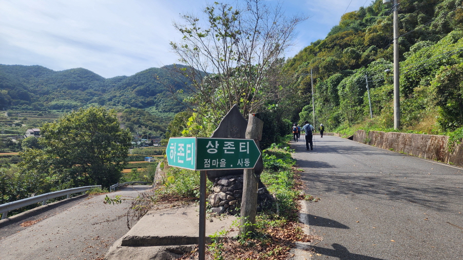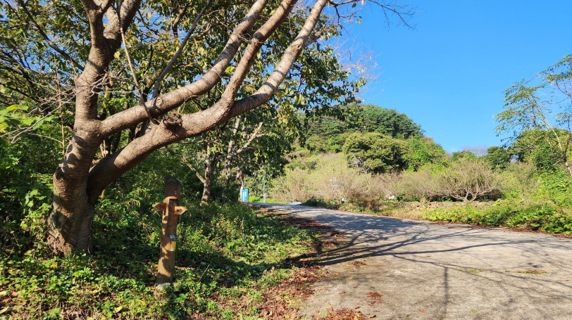 ( 단 단점도 있다. 해를 등지고 걸어 좋기는 하나, 숲길 시작점에서 고개를 넘으면 마을길 모든 길이 땡볕이다. 낮에는 해가 뜨겁다는 것이 단점이다. 그러니 날씨 상황을 보고 시작점을 정하는 것이 좋겠다.)