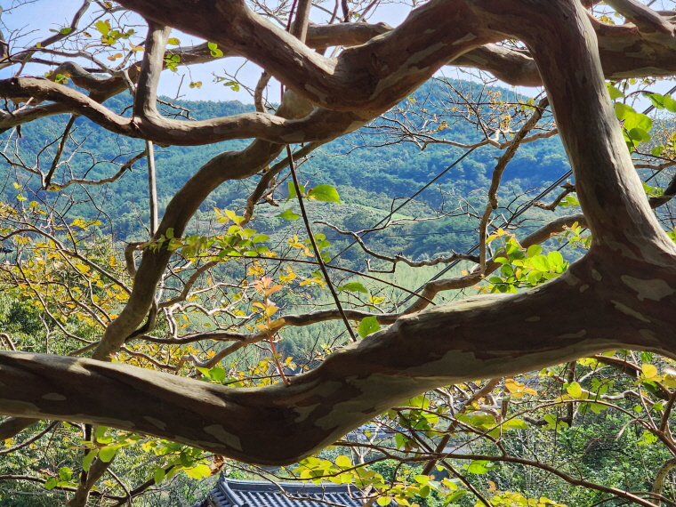 - 이 나무는 바위 아래에서 태어나 휘어져 살아남았다. 대단하다!