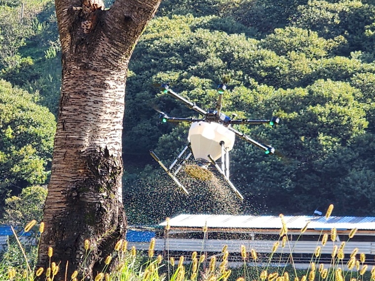 - 드론이 논에 약을 뿌리는 모습. (요즘은 드론으로 농사를 짓는 다더니 실제로 보았다)