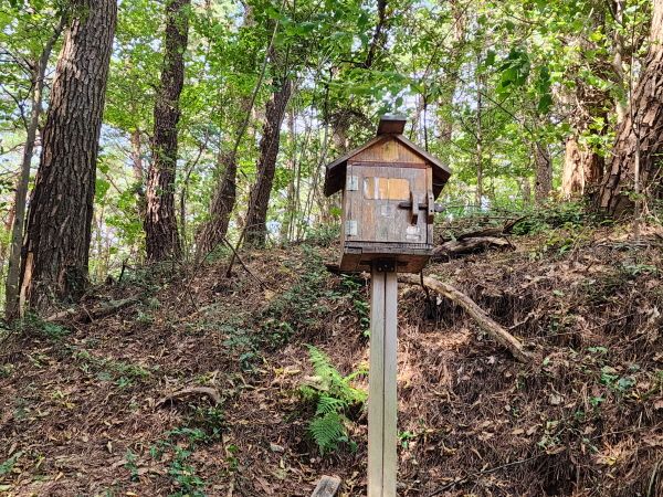 - 존티재 고개의 스탬프 함에서 인증 스탬프를 찍고 잠시 쉰다.