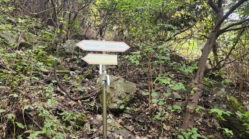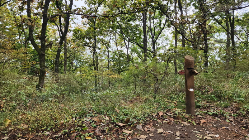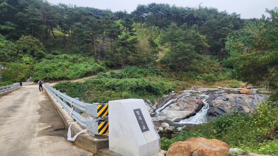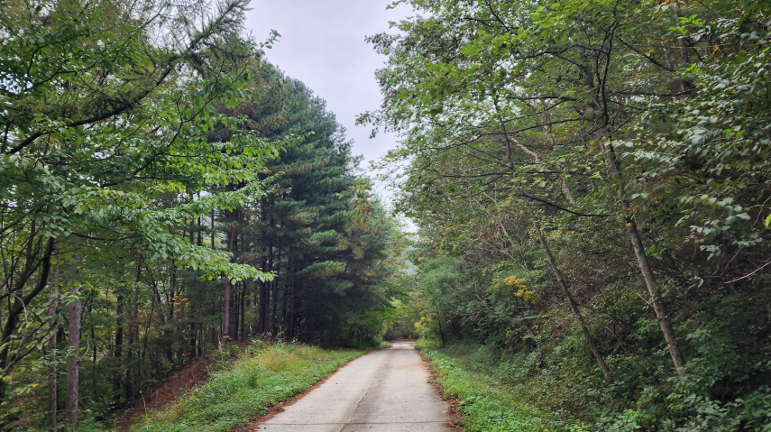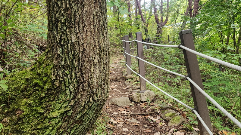 - 숲길의 시작이다. 상사폭포 가는 길. (5코스는 여기서부터 거의 전부가 숲길이라 코스중에 가장 아름다운 길로 알려져 있다.) 상사폭포- 쌍재 - 고동재 등을 넘어 간다.