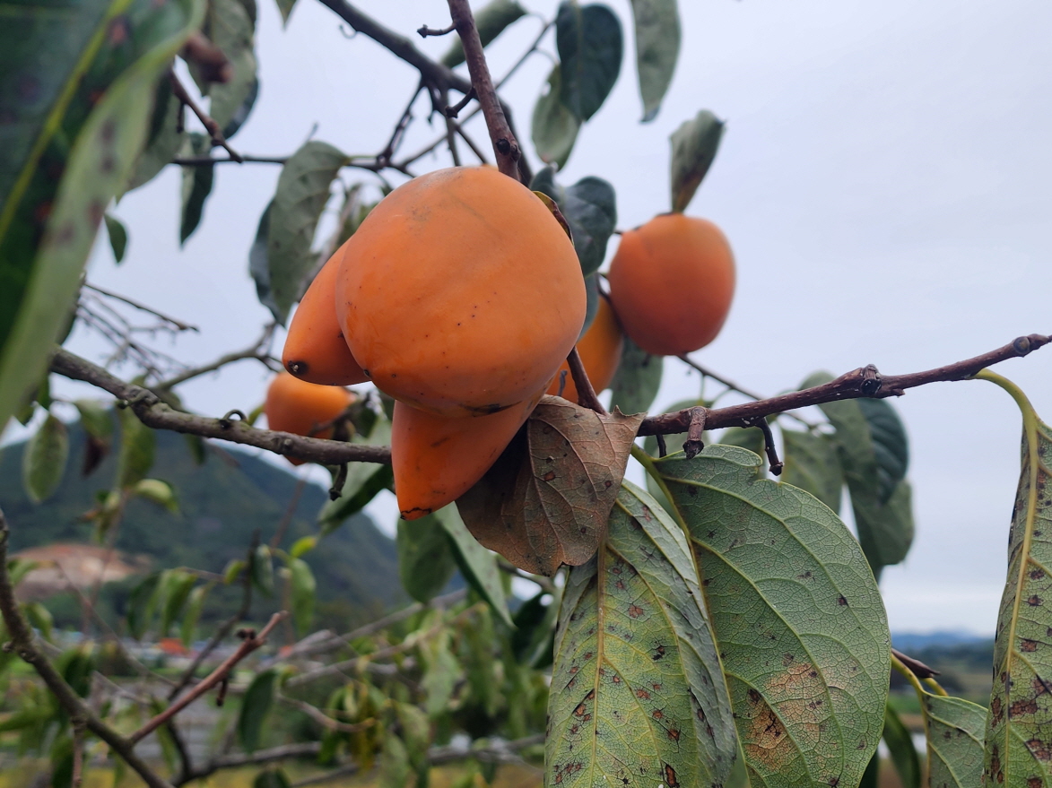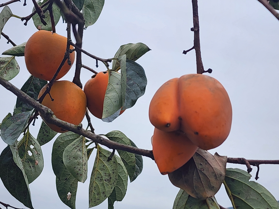 - 감나무에 세개로 갈라진 기형으로 생긴 감이 달렸다. 신기하여 찍어 보았다.
