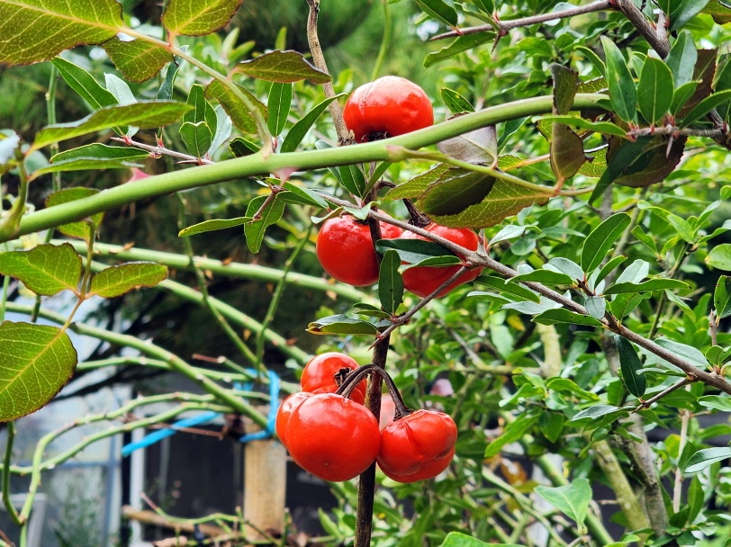 - 지금까지 지리산둘레길을 돌면서 마을마다 있던 석류나무에 익어가던 석류가 이제는 완연한 가을이 되어 농익어 벌어졌다. 아무도 석류를 따지 않은 모양이다.