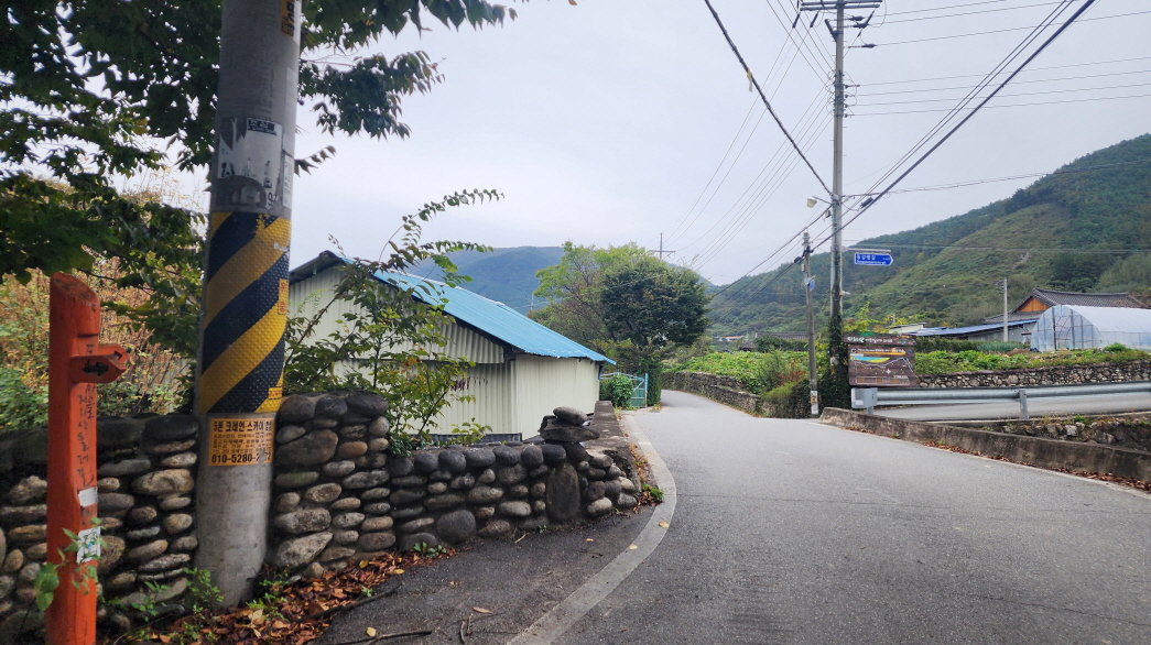 - 숲길에서 내려와 임로를 따라가면 수철마을이다. (코스 종점이 가까워졌다.)