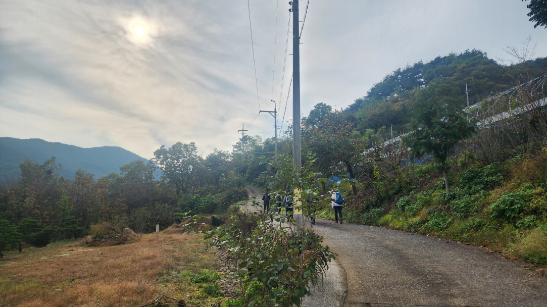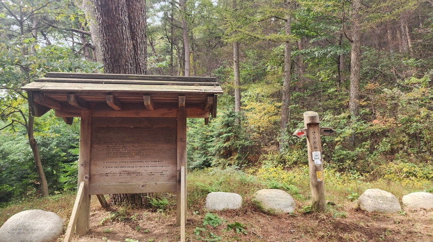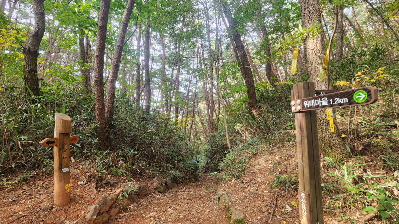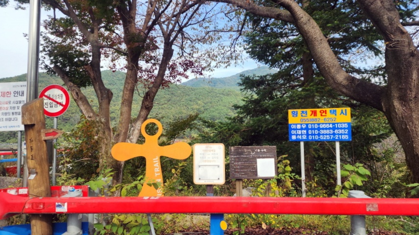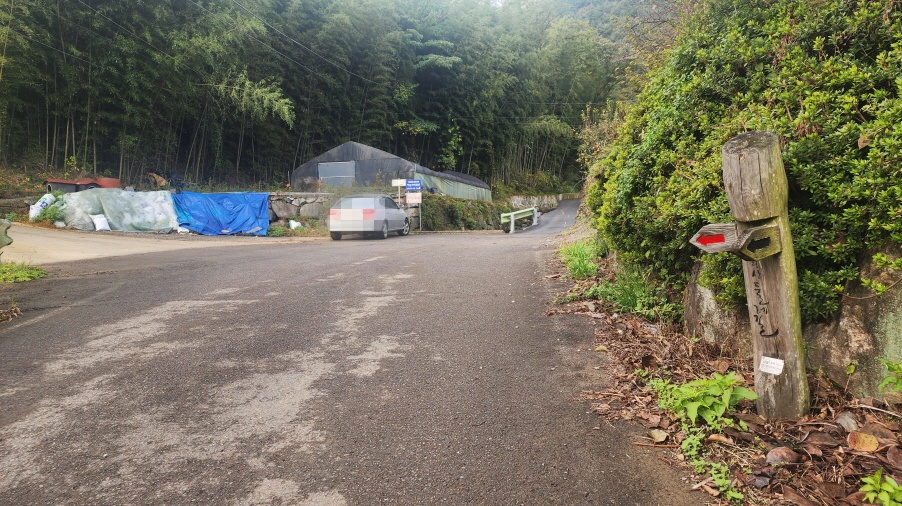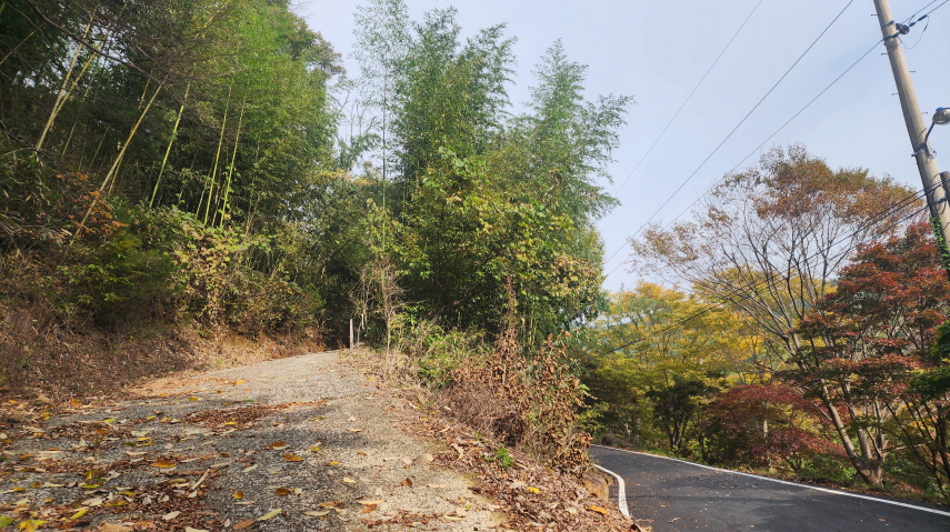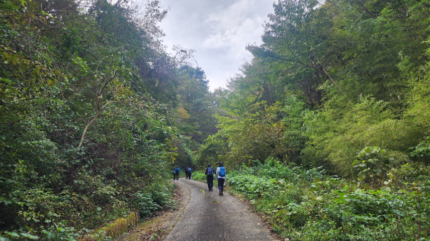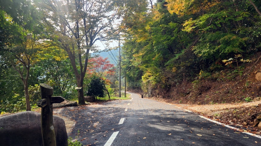 - 도로를 따라 조금 내려오다, 벅수(이정표))가 가르키는 방향으로 구부러지며 올라간다.