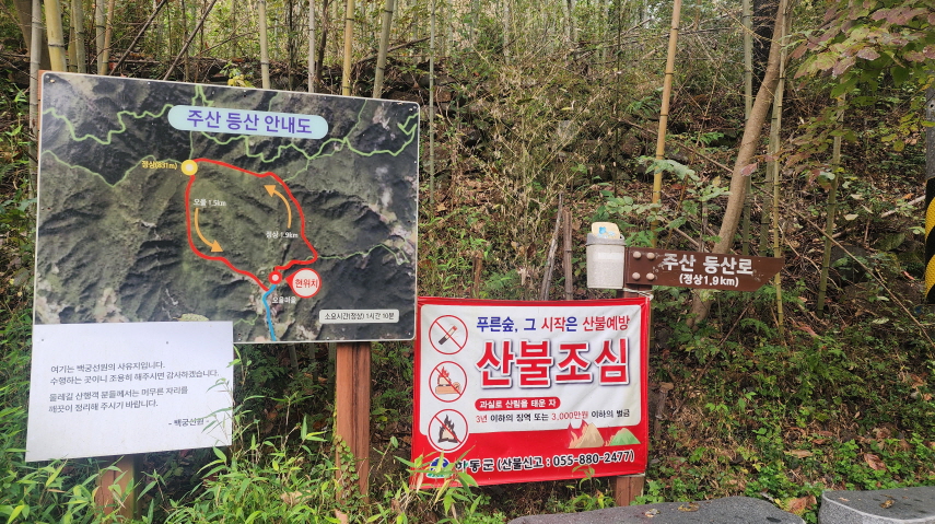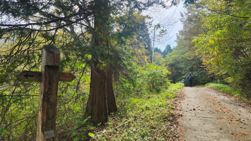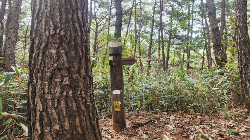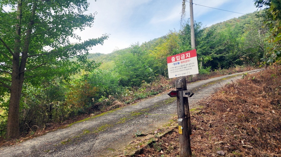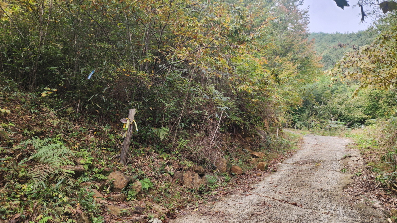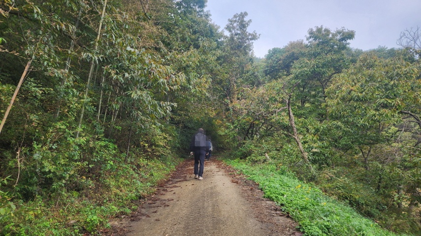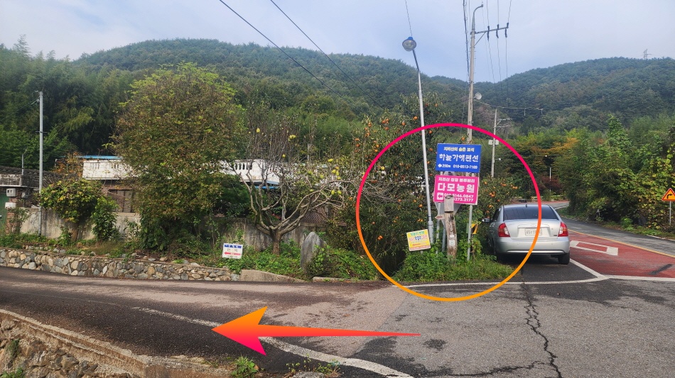 - 도로를 따라 조금 내려오다, 벅수(이정표))가 가르키는 방향으로 구부러지며 올라간다.