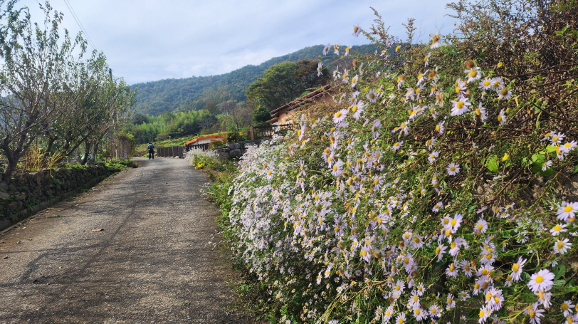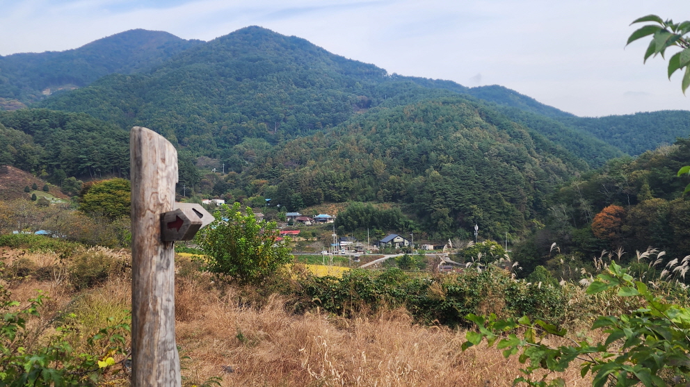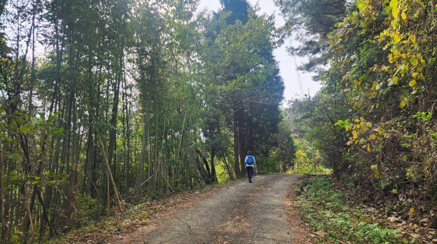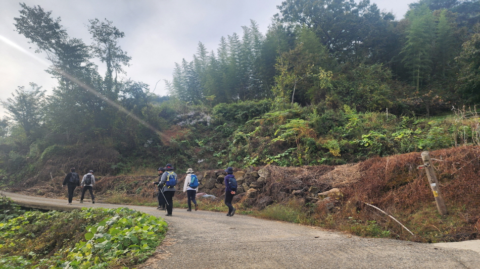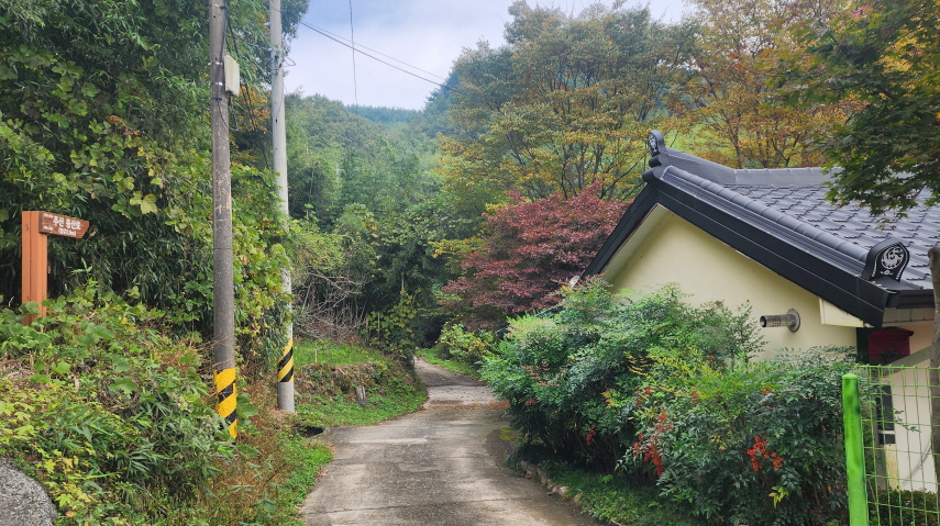 - 마을길을 걸어 '지네재'를 향해 올라간다.