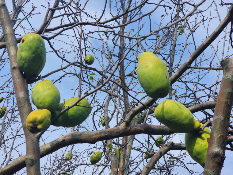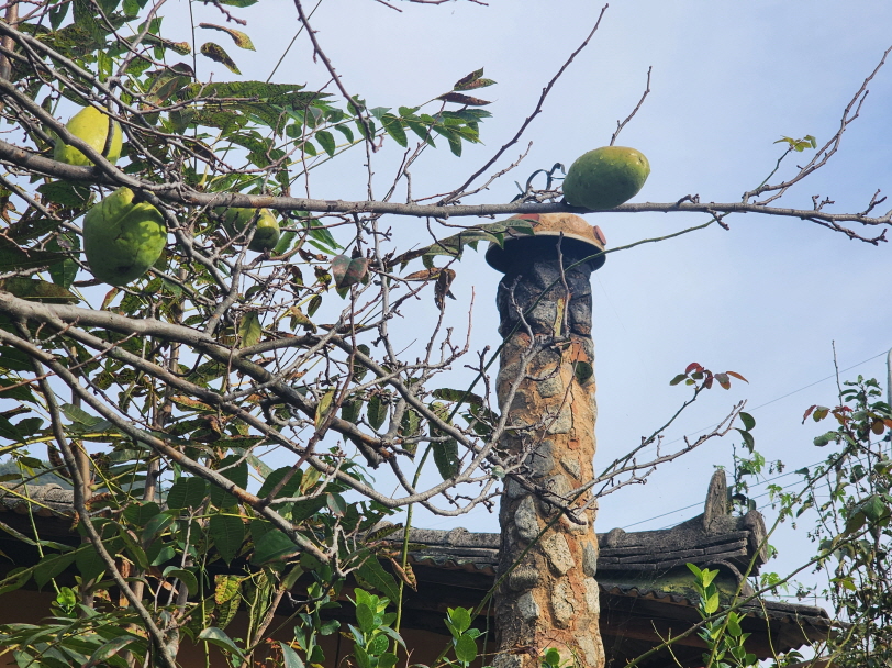 - 우와~~ 아주 실한 모과가 주렁주렁 달렸다. 모과나무가 있는 집의 굴뚝이 색다르다